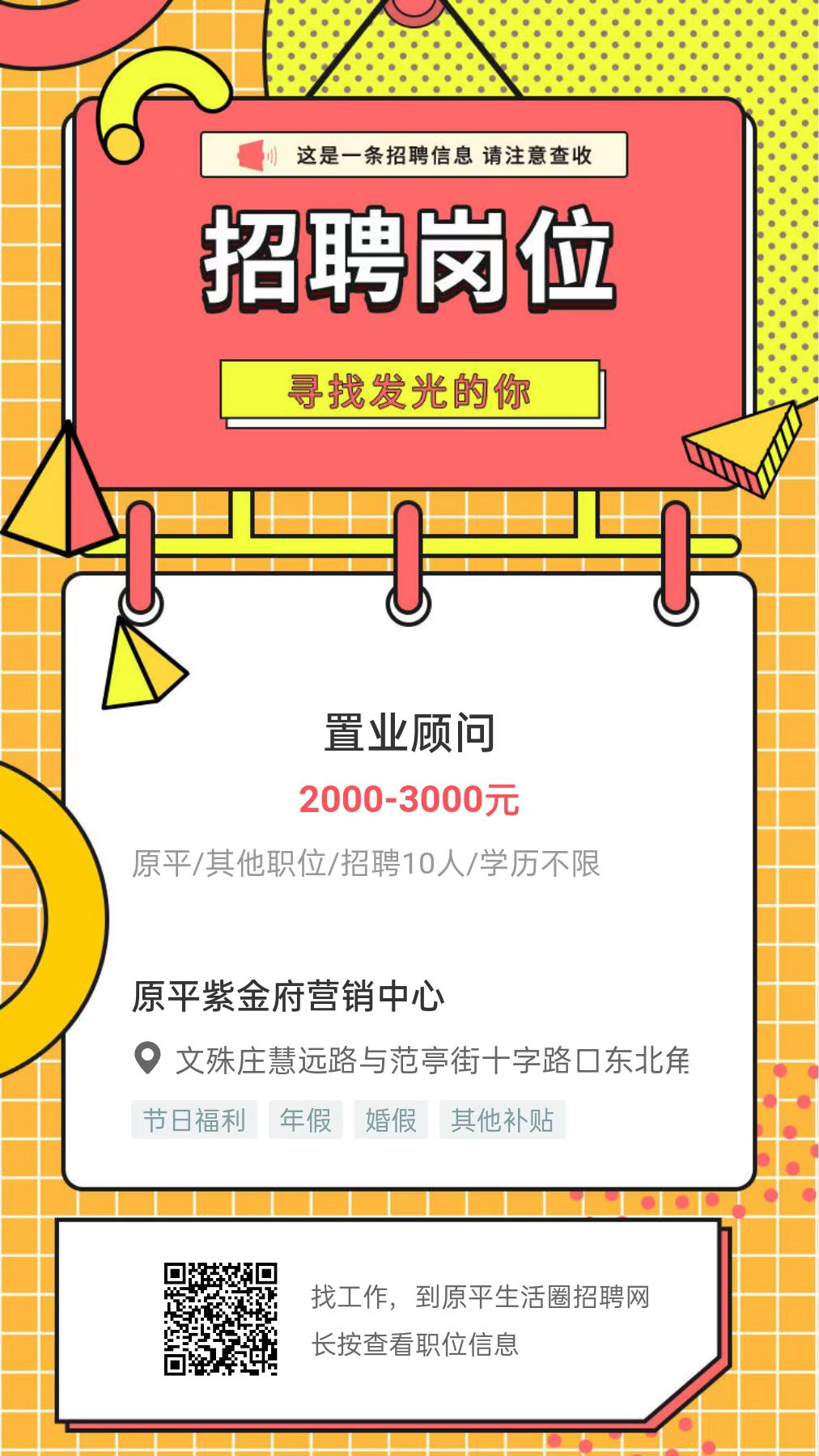【最新招聘】原平紫金府营销中心招聘置业顾问