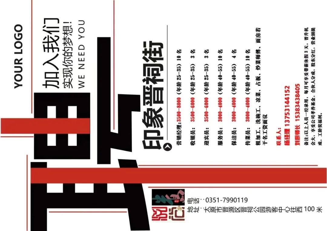 【招聘】饭店招聘大同食府古县城店,长期工,假期工,男女不限,火热招聘中,服务员 若干名3500+提成 ,洗碗工 若干名3500+提成,传菜员 若干名3500+提成,以上工作包吃包住+意外险+分红+工龄奖+年终奖,地址:太原市晋源区古县城(城内)北街,联系方式: 18534396129(同微信)15513292129(同微信)