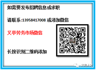 烧饭 1名 男女都可,55岁以下,本地人优先,烧八个人的中饭晚饭,加工厂卫生,包吃住,工资4500元/月工厂跟单女 要求有跟单经验,主要负责与外贸公司对接业务,工厂对接生产、开发等采购员男,要求有驾照,对义乌市布料市场熟悉,有一定的沟通能力,工资6000-8000元/月杂 工要求:男,年龄 25-45岁,能吃苦耐劳,服从工作安排,头脑灵活,工资 5000-6500 元/月。普 工要求有包装、打胶枪经验工资4500-7000元/月仓 管男要求:年龄 23-45岁,能吃苦耐劳,有责任心,工作认真仔细,服从安排,有一年及以上工作经验。品检员女要求对布艺有经验,主要负责检查生产出来的货物是否与样品有差异,工资5000-6500元/月以上岗位月休2天,有全勤奖,加班有加班费,公司有宿舍,如果不住有补贴,生活补贴400元/月13667933759徐厂长13906898492易先生保底工资5000 元/月+餐补上班时间:8:00-17:30前 台 女1名形象佳,口才好,需要每天帐目清算,会推销义亭姑塘工业区俱佳旅游用品有限公司厂内
