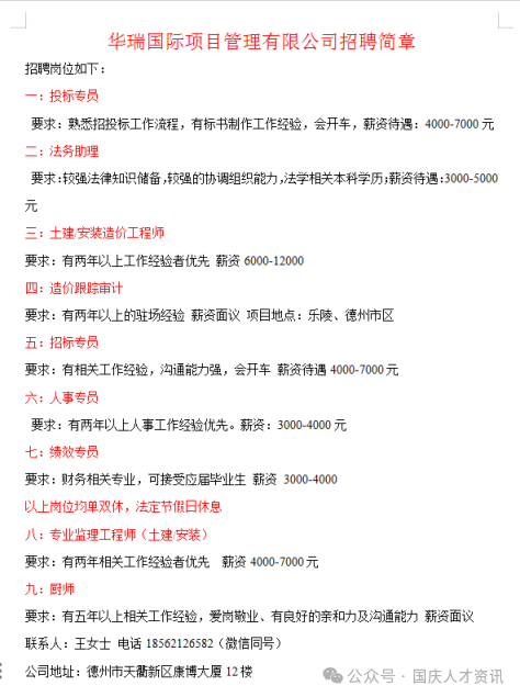 任职要求:大专以上学历,办公软件操作熟练,普通话标准,有较强的沟通及学习能力。