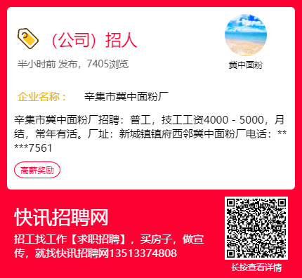 联系时请告知在快讯招聘网-辛集 晋州站上面看到的