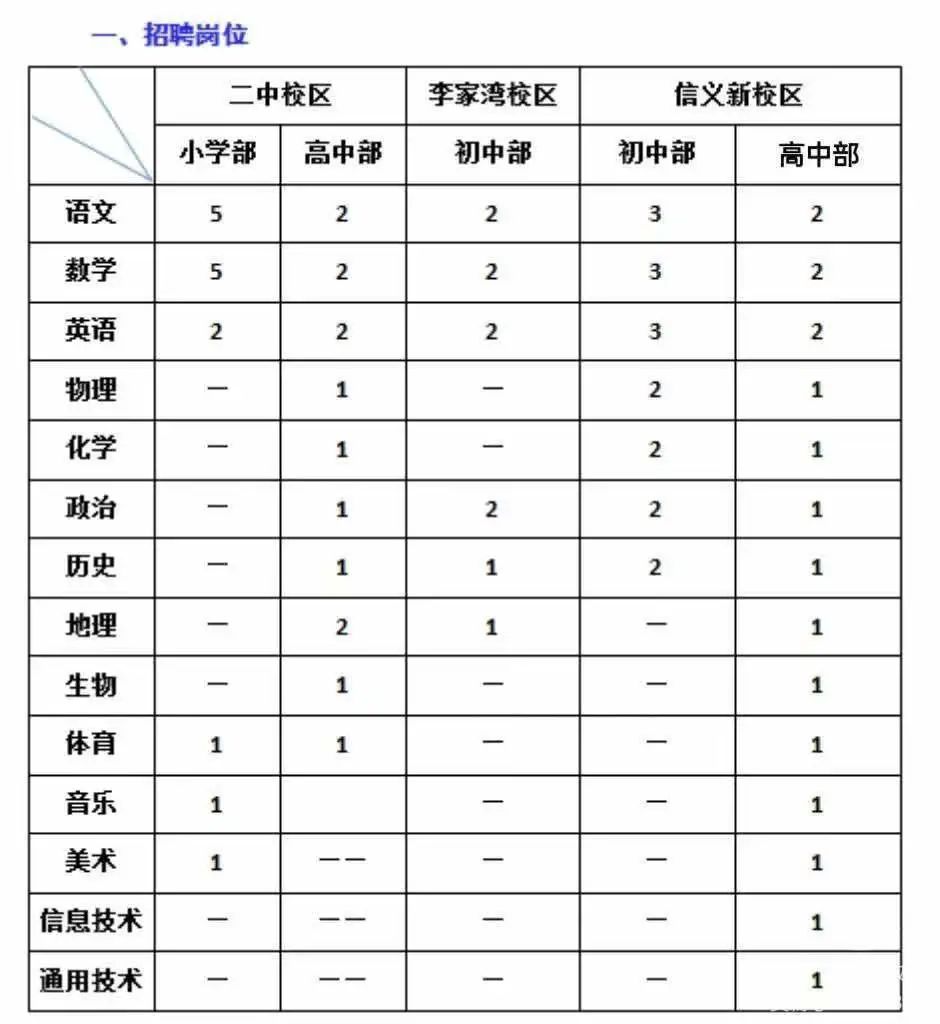 (1)小学教师二本院校以上学历,初中教师一本院校以上学历,高中教师研究生学历或优秀大学本科毕业生学历,且具有所聘学科相应学段的教师资格,各学段名优成熟教师的学历可适当放宽;