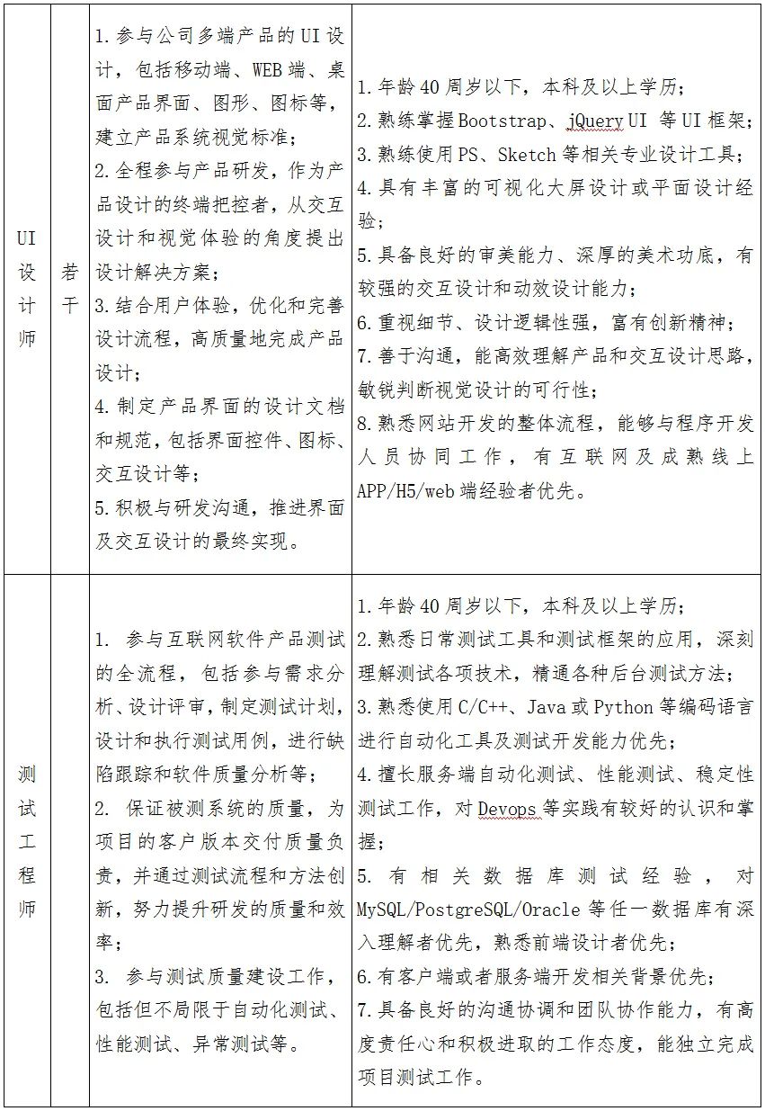 研发工程师、产品运营经理、UI设计师、测试工程师岗位:海口市秀英区长滨东一街海南联通智慧大厦