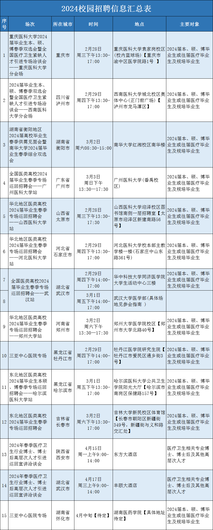 三亚中心医院(海南省第三人民医院)拟于近日招聘医生、护士、行政等岗位,自2月28日开始至4月底,医院将在重庆、泸州、衡阳、太原、武汉、石家庄、长春等13个城市开展校园招聘,看看有你心仪的岗位吗?