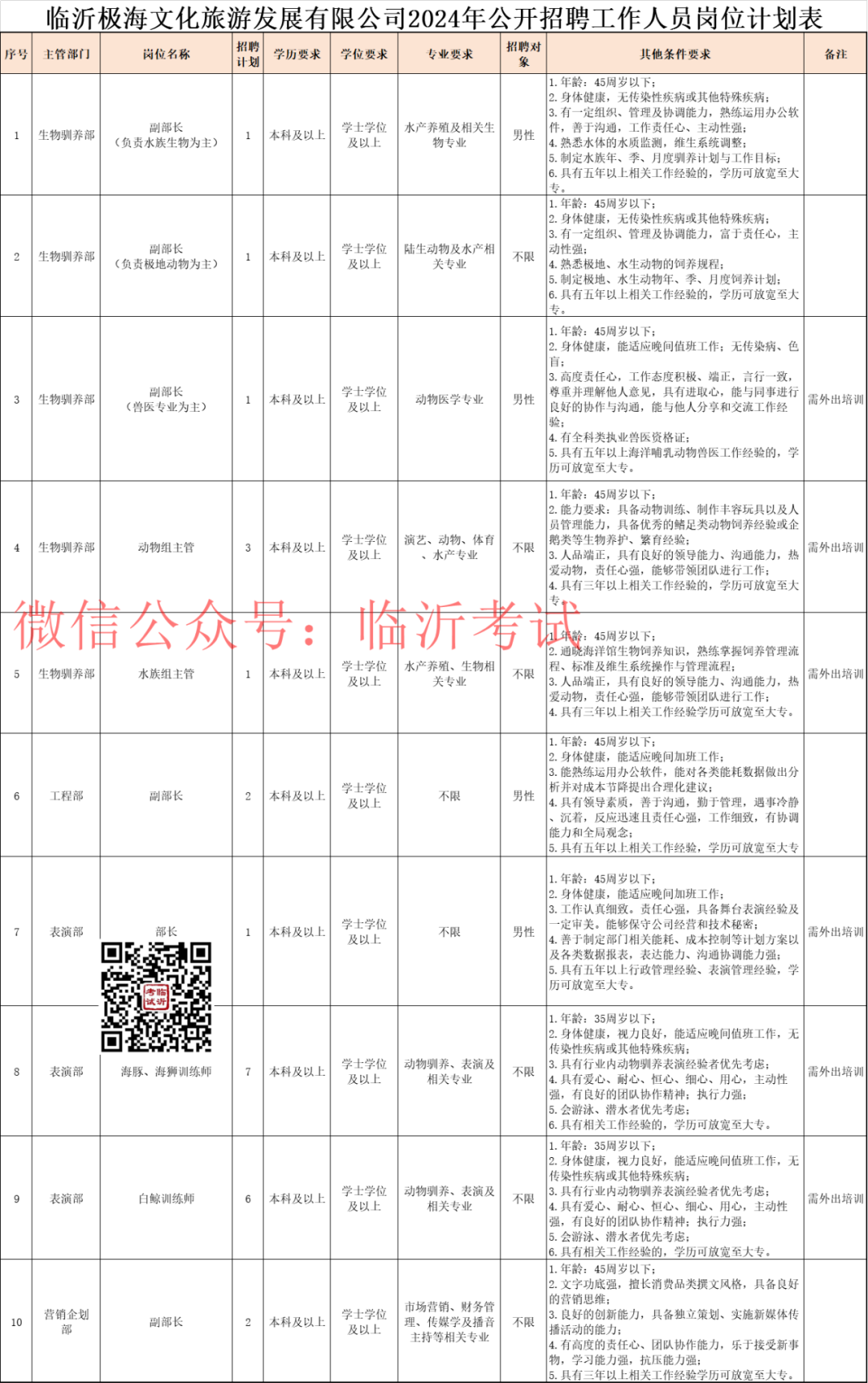 附件:1.临沂极海文化旅游发展有限公司2024年公开招聘工作人员岗位计划表