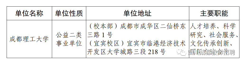 根据《事业单位人事管理条例》、《事业单位公开招聘人员暂行规定》和《四川省省属事业单位公开招聘工作人员实施细则(试行)》等有关规定,经四川省教育厅备案,成都理工大学面向社会公开招聘工作人员20名。现将公开招聘有关事项公告如下[本公告同时在四川省人力资源和社会保障厅(以下简称“四川省人社厅”)官网(http://rst.sc.gov.cn,下同)“人事考试”专栏、四川省教育厅官网(http://edu.sc.gov.cn,下同)和成都理工大学网站(http://www.cdut.edu.cn,下同)上发布]。