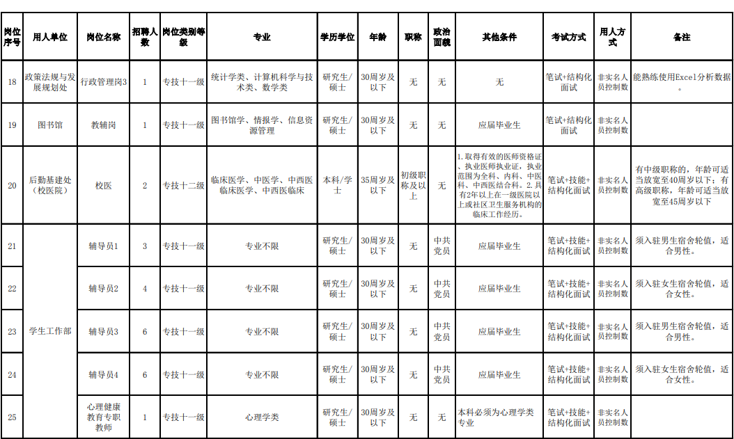 校医岗、辅导员和心理健康教育专职教师考试采取笔试+技能+结构化面试相结合的方式进行。