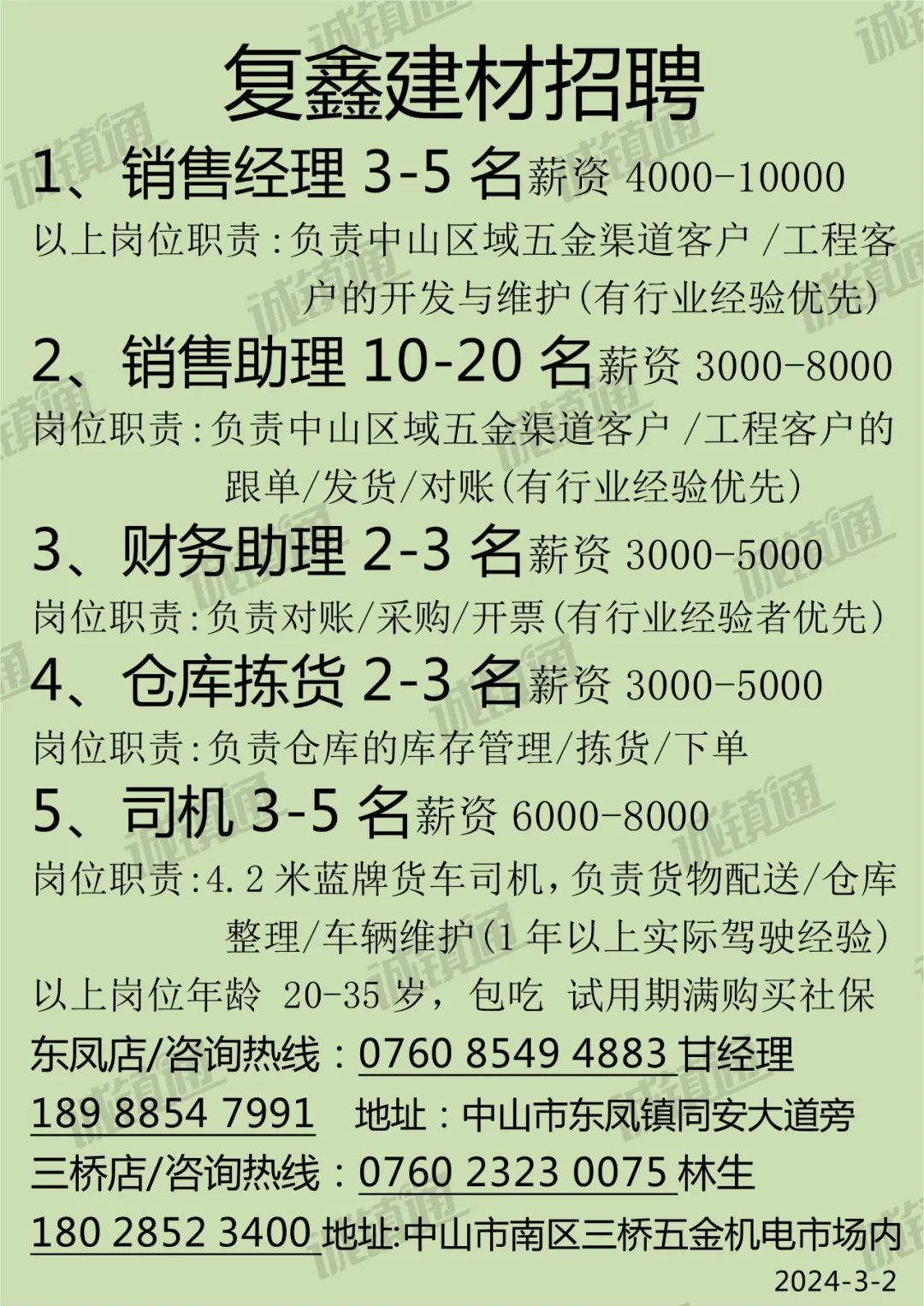 >3月2日【其他行业】招聘信息