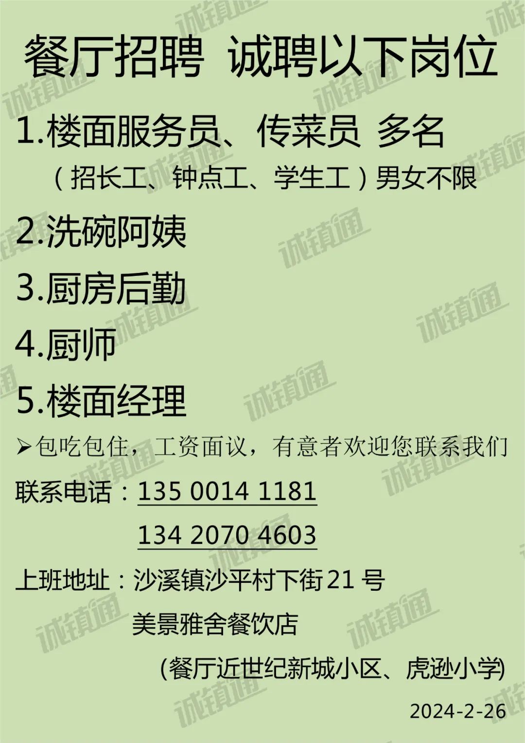 【琼中招聘信息】招聘配菜,洗碗工,杀鱼工,服务员