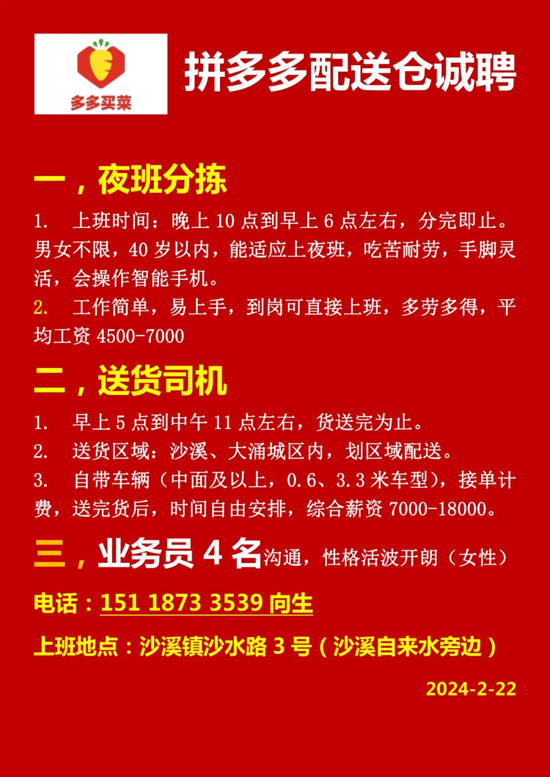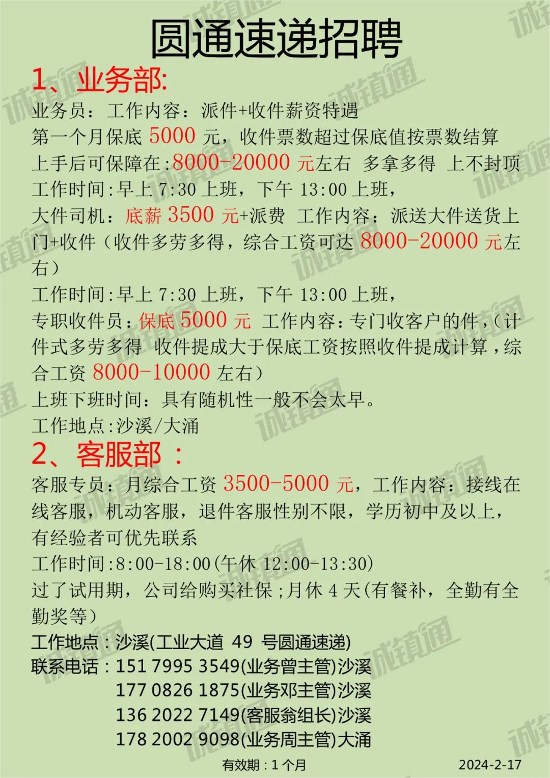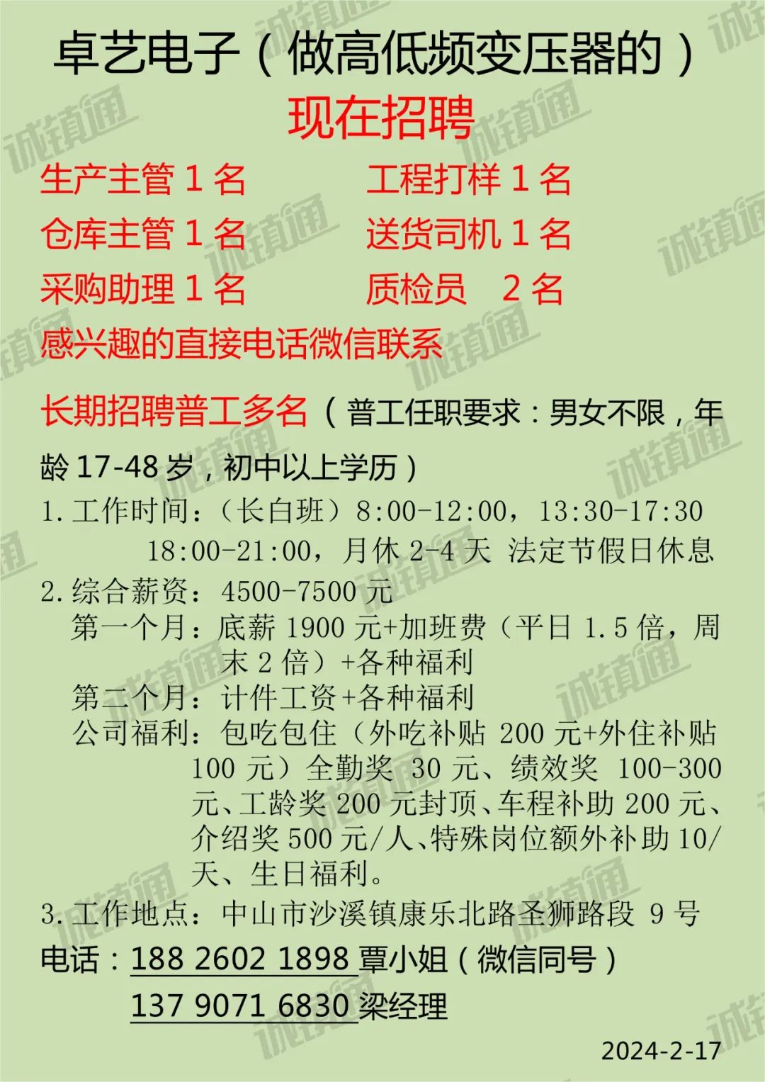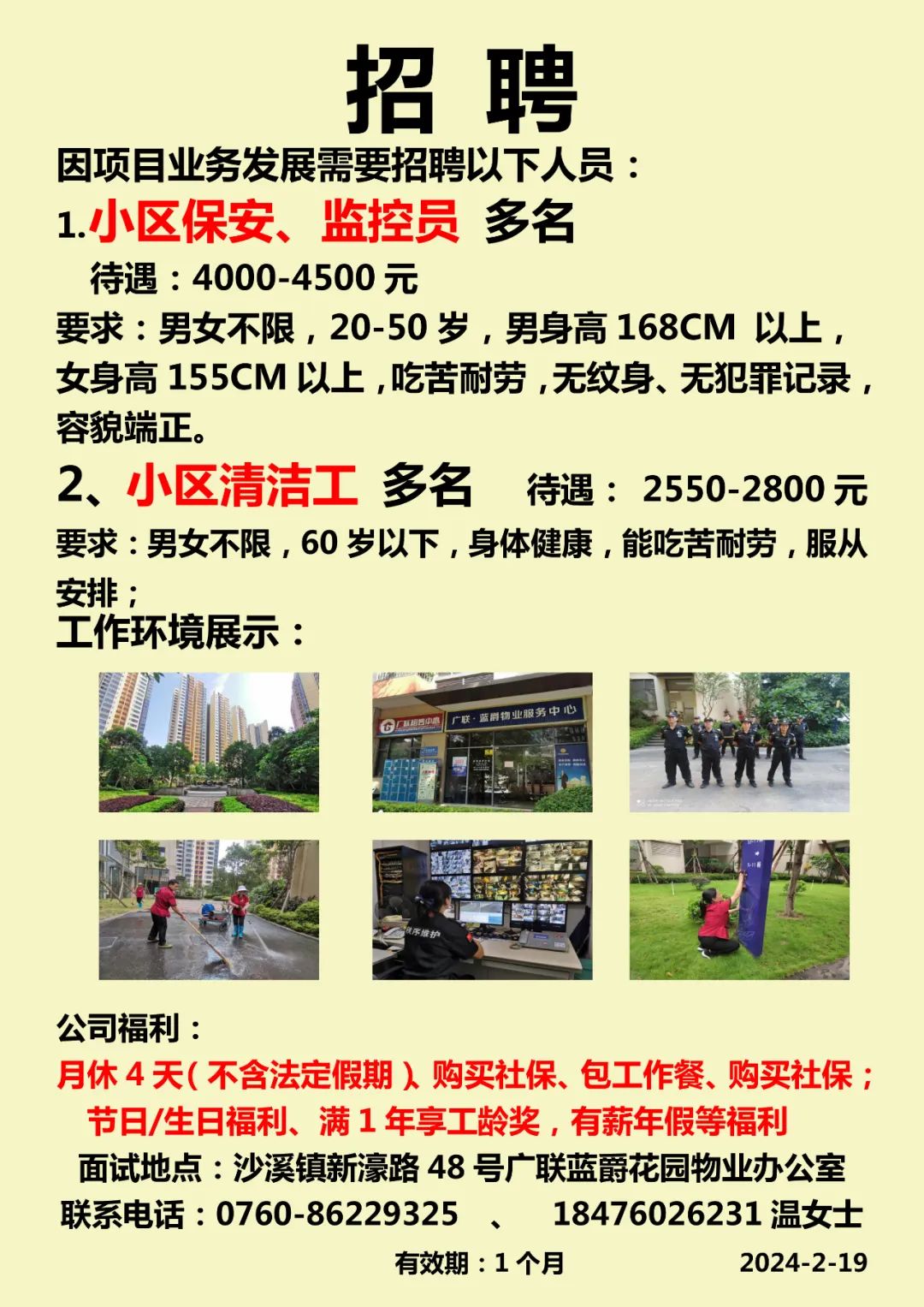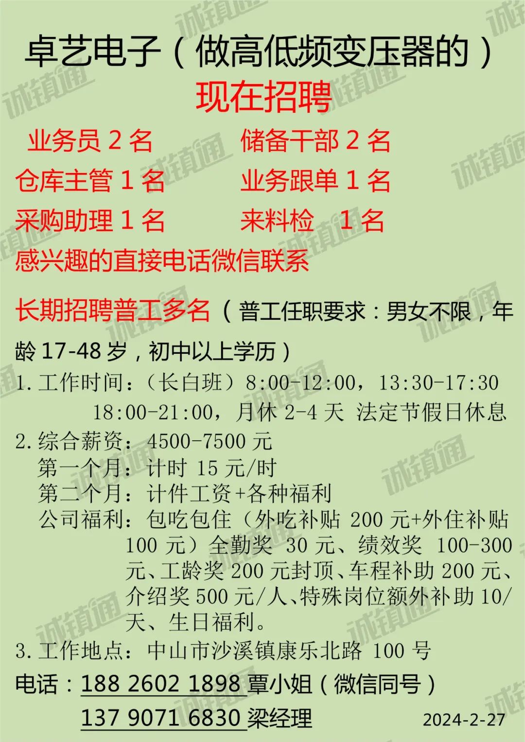2024年本公司高薪诚聘:网招主管、人事经理、文员、驻厂管理员、宿管等,福利待遇好,发展空间大,诚邀请您的加入