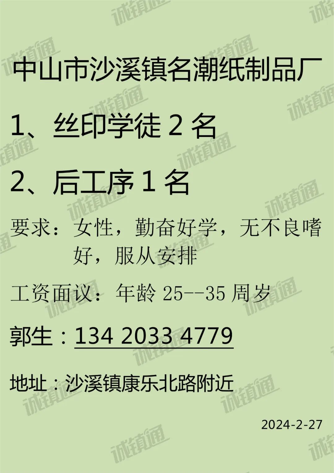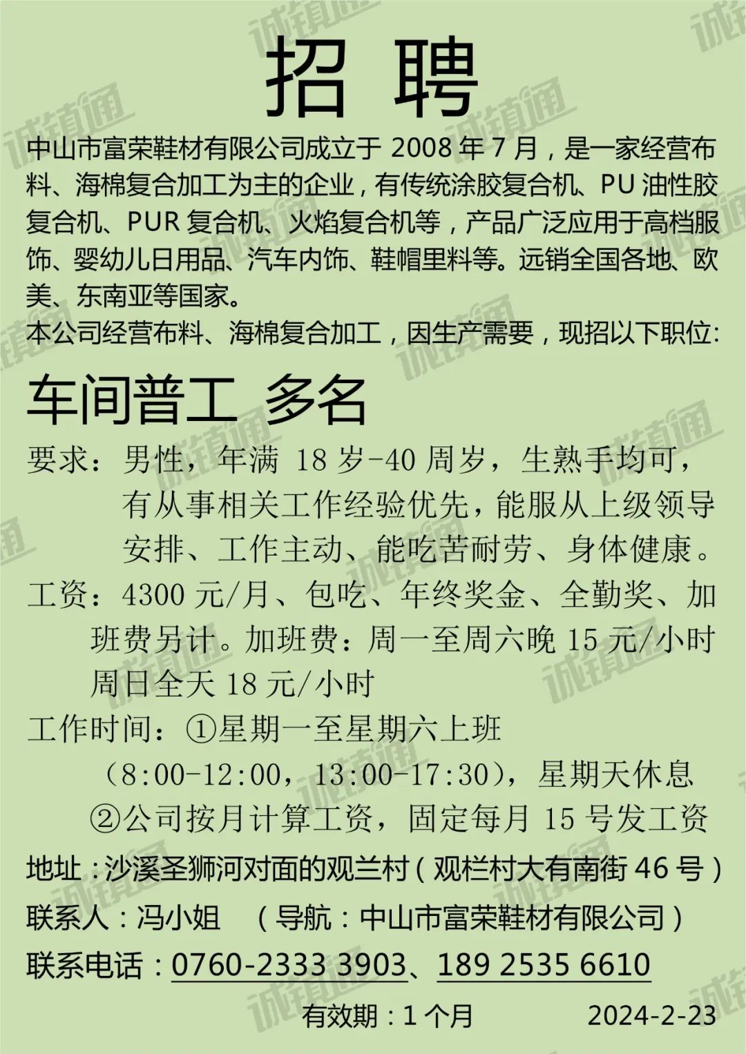 “圃岗有约 就等您来”㊺ | 黄圃镇就业招聘专栏