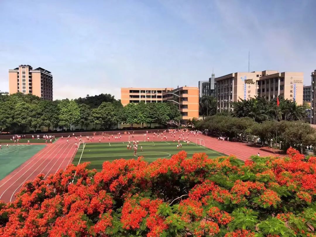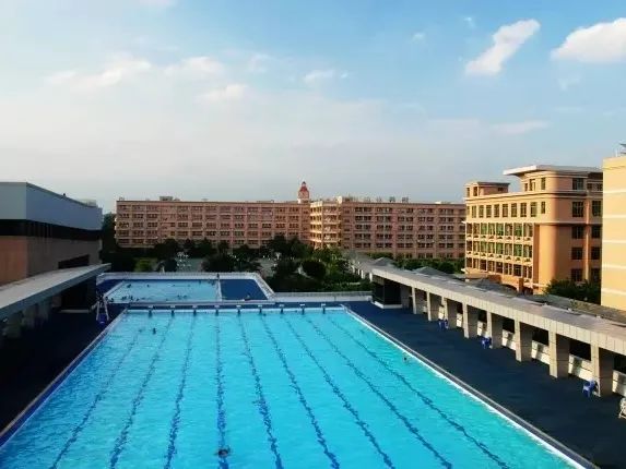 学校拥有400米标准塑胶跑道、标准草坪足球场2个,高标准篮球场9个,普通篮球场22个,标准排球场、网球场各4个,羽毛球场12个,乒乓球台60张,师生健生房1间,拥有循环水系统游泳馆、多功能室内运动馆各1座。