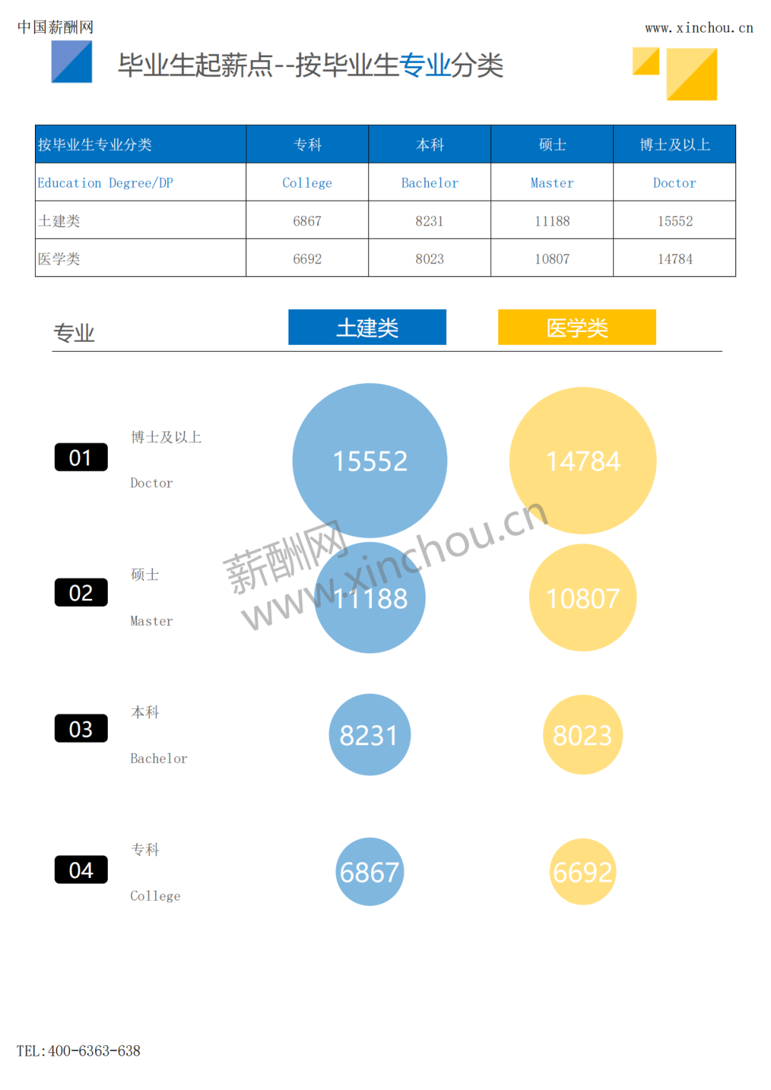 其中,起薪点:土建类>医学类>外语类>财经类。
