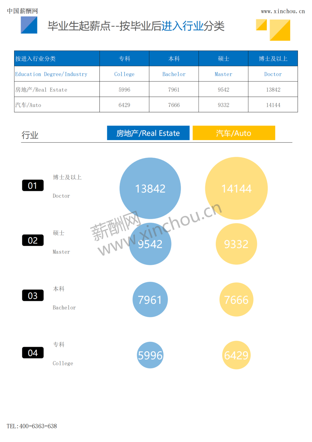 其中,总体上,起薪点:汽车和高科技不相上下,但都稍高于房地产和金融;房地产和金融不相上下。