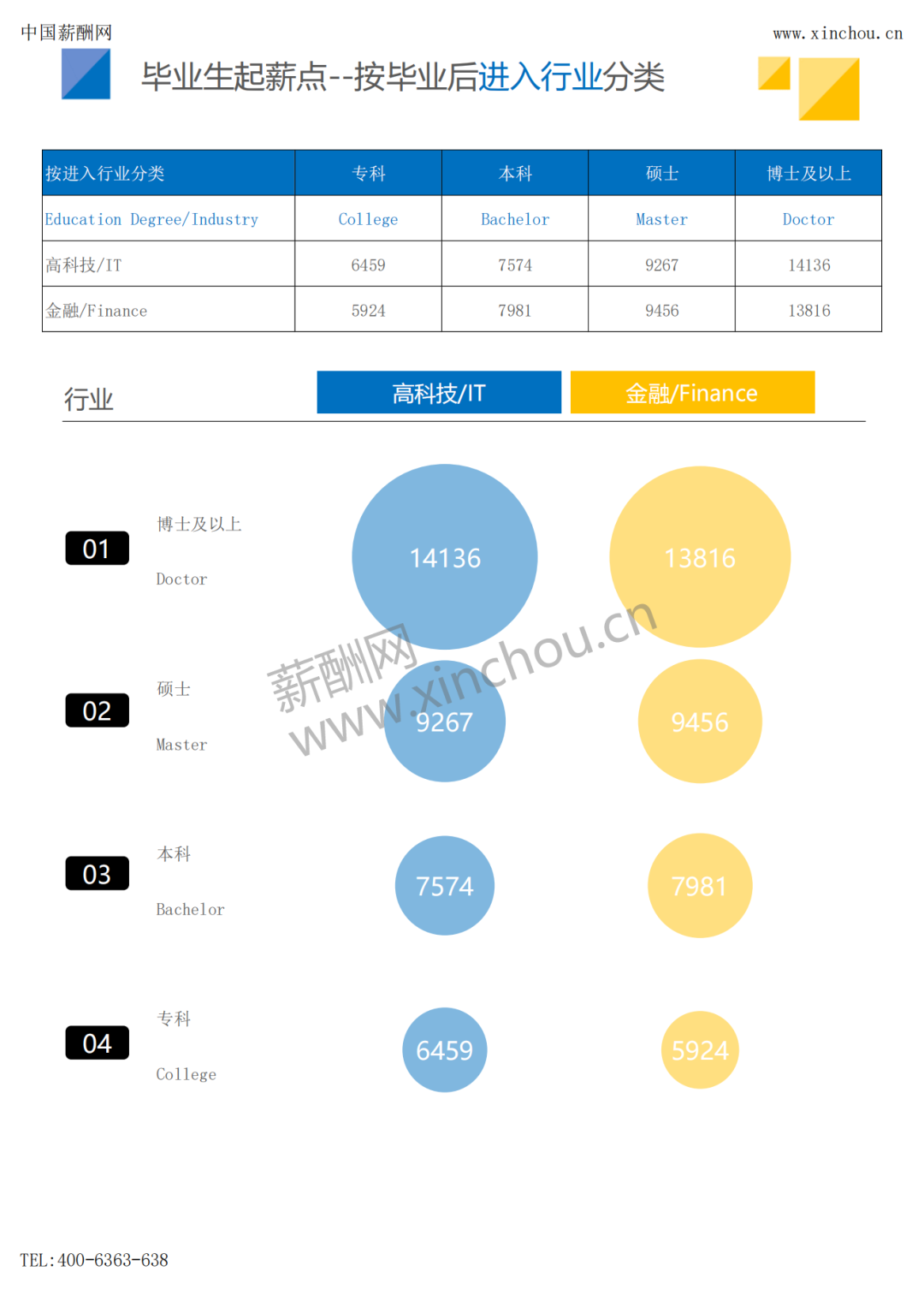 博士及以上学历起薪点比硕士学历高2000-3000元,硕士学历比本科学历高1400-3000元,本科学历起薪点则比专科及以下学历高300-1000元。
