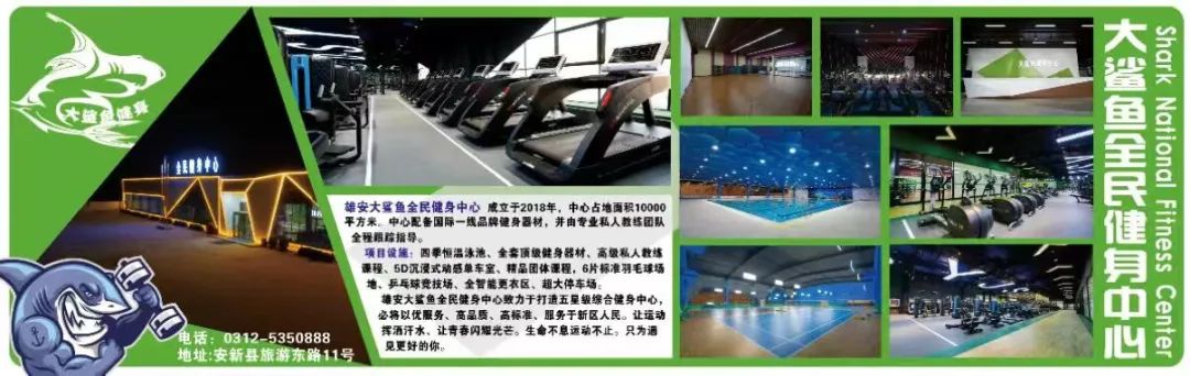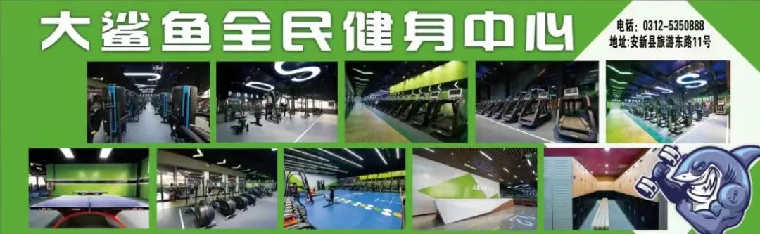 大鲨鱼全民健身中心:位于安新县城旅游东路11号 占地面积10000平方米。中心配备国际一线品牌健身器材,并由专业的私人教练队伍全程跟踪指导。