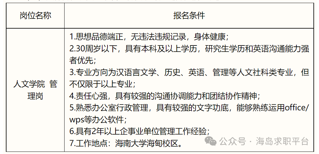 2024年公开招聘海南大学人文学院劳务派遣人员公告