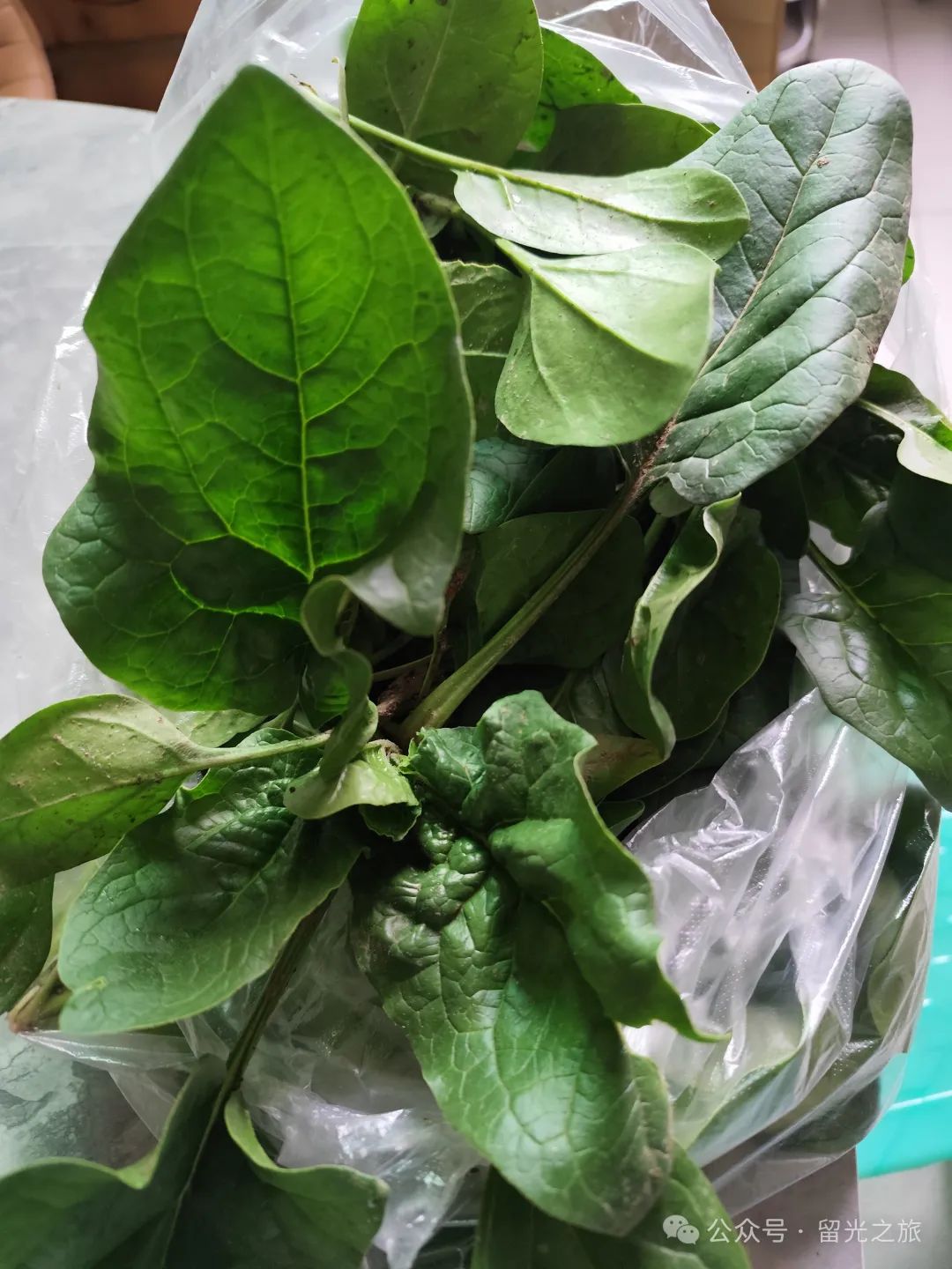 我和儿子把密集的菠菜里的几棵大菠菜用小刀挖了出来,绿油油的,特别新鲜,带着泥土的芬芳。😊😍(出门忘带手机,在农场时照片都没有拍一张)