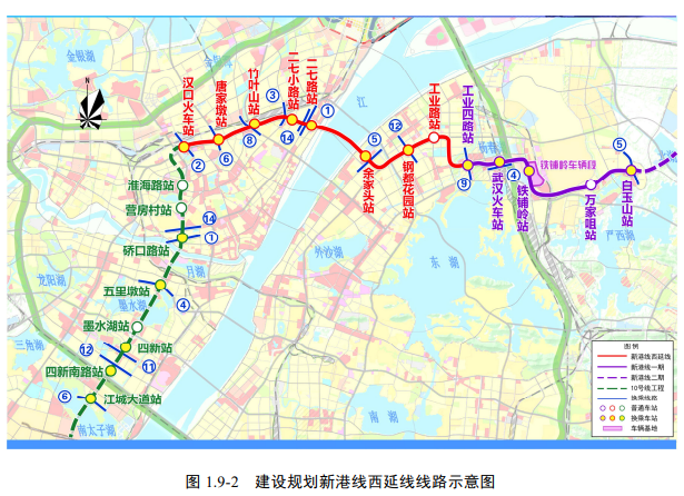 新港线西延线工程线路自新港线工业四路站(不含)至汉口火车站,线路全长 19.