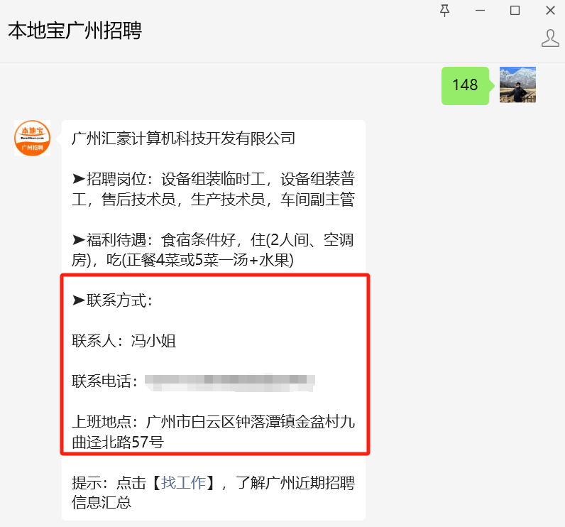 提醒:扫码关注【本地宝广州招聘】公众号,点击发消息,回复关键词【148】,可获取联系方式!
