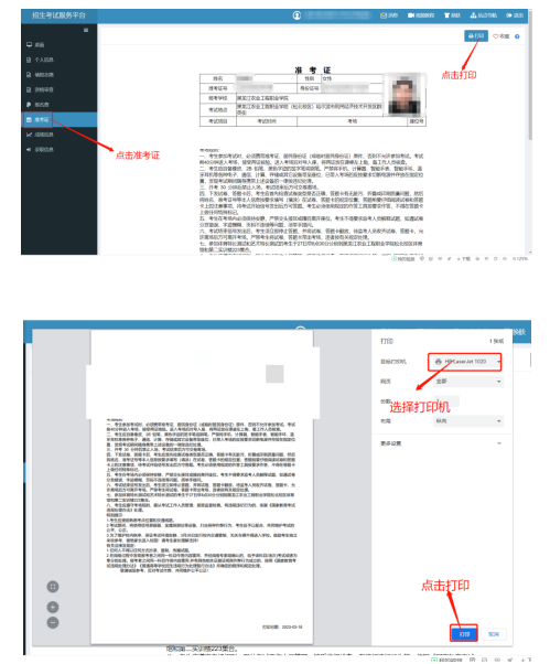 1、缴费完成后,点击左侧菜单的“准考证”,出现准考证页面,点击右上方的“打印”,可打印准考证。