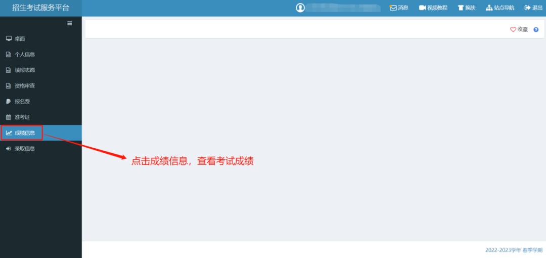 四、点击左侧菜单的“成绩信息”,即可查到考试成绩。