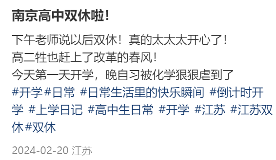 江苏高中“双休or单休”话题持续引发热议