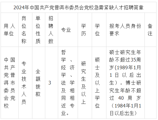 1.2024年中国共产党普洱市委员会党校急需紧缺人才招聘简章