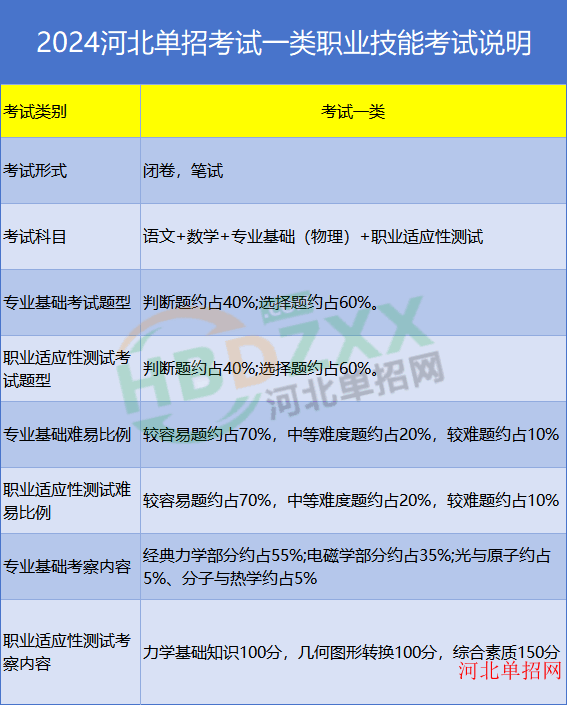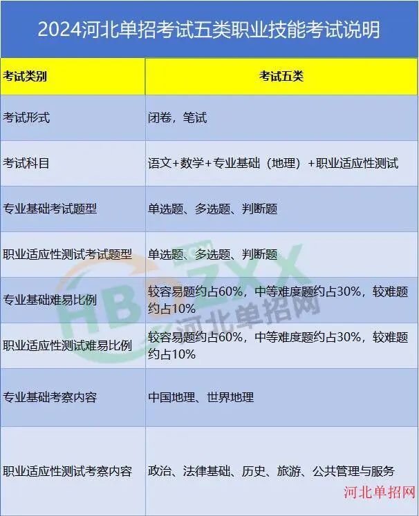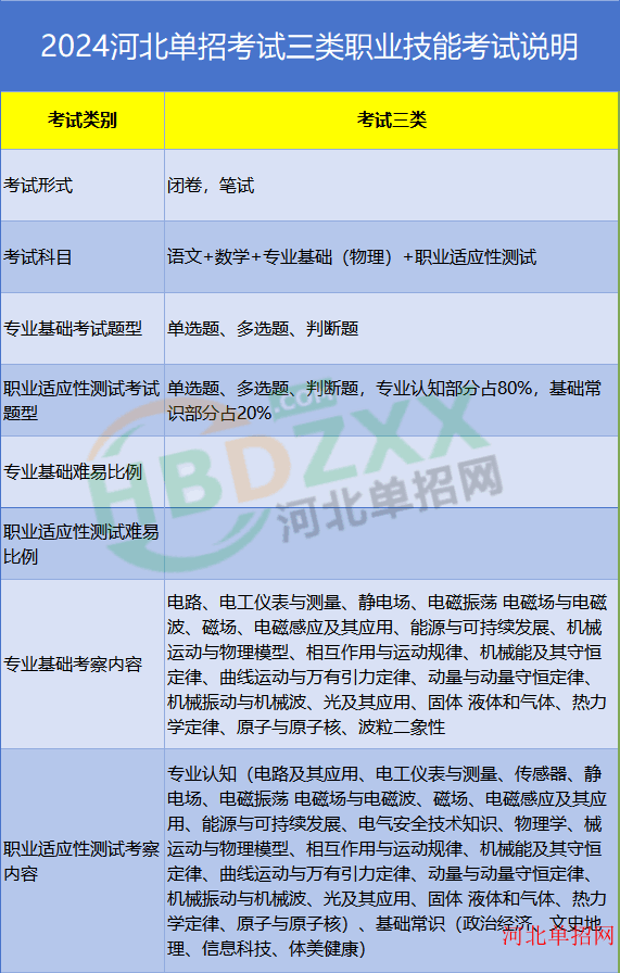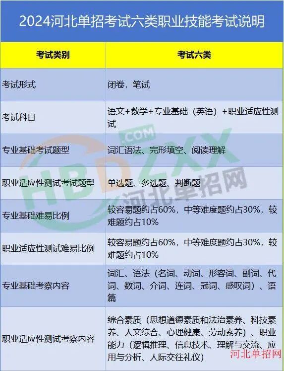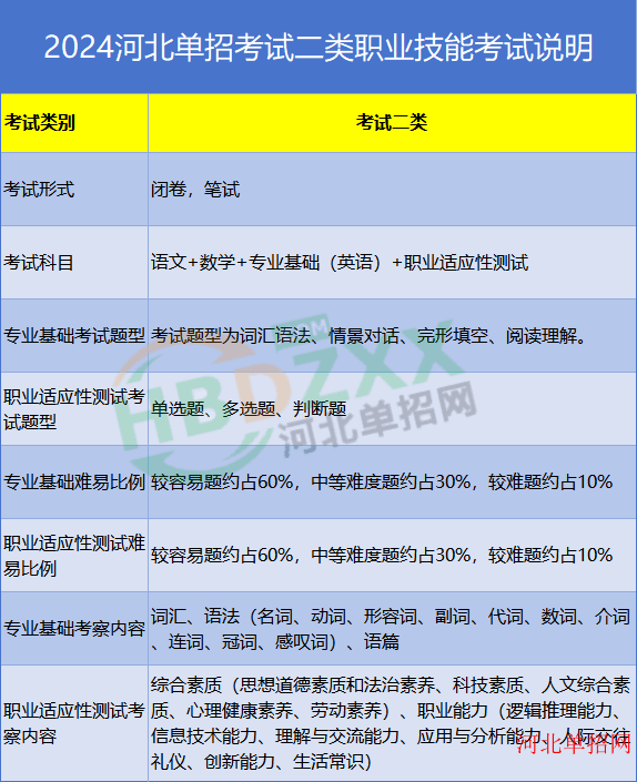 考试四类:2024年河北省普通高职单招考试四类职业技能专业基础(英语)考试说明、2024年河北省普通高职单招考试四类职业技能 职业适应性测试考试说明