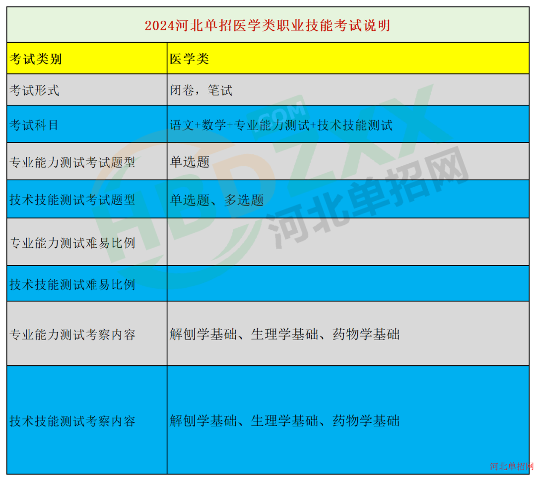 医学类:2024年河北省高职单招面向中职生医学类职业技能考试说明