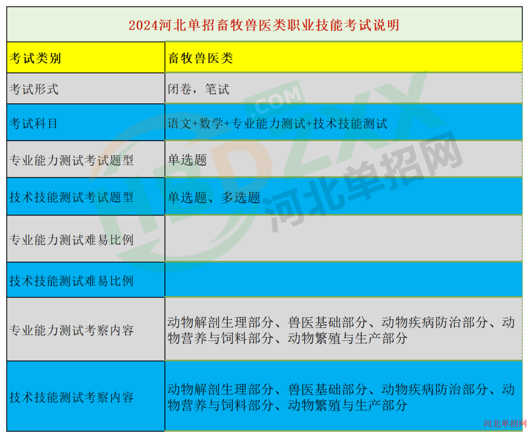 畜牧兽医类:2024年河北省普通高职单招考试 面向中职生的畜牧兽医类专业能力测试考试说明、2024年河北省普通高职单招考试 面向中职生的畜牧兽医类技术技能测试考试说明