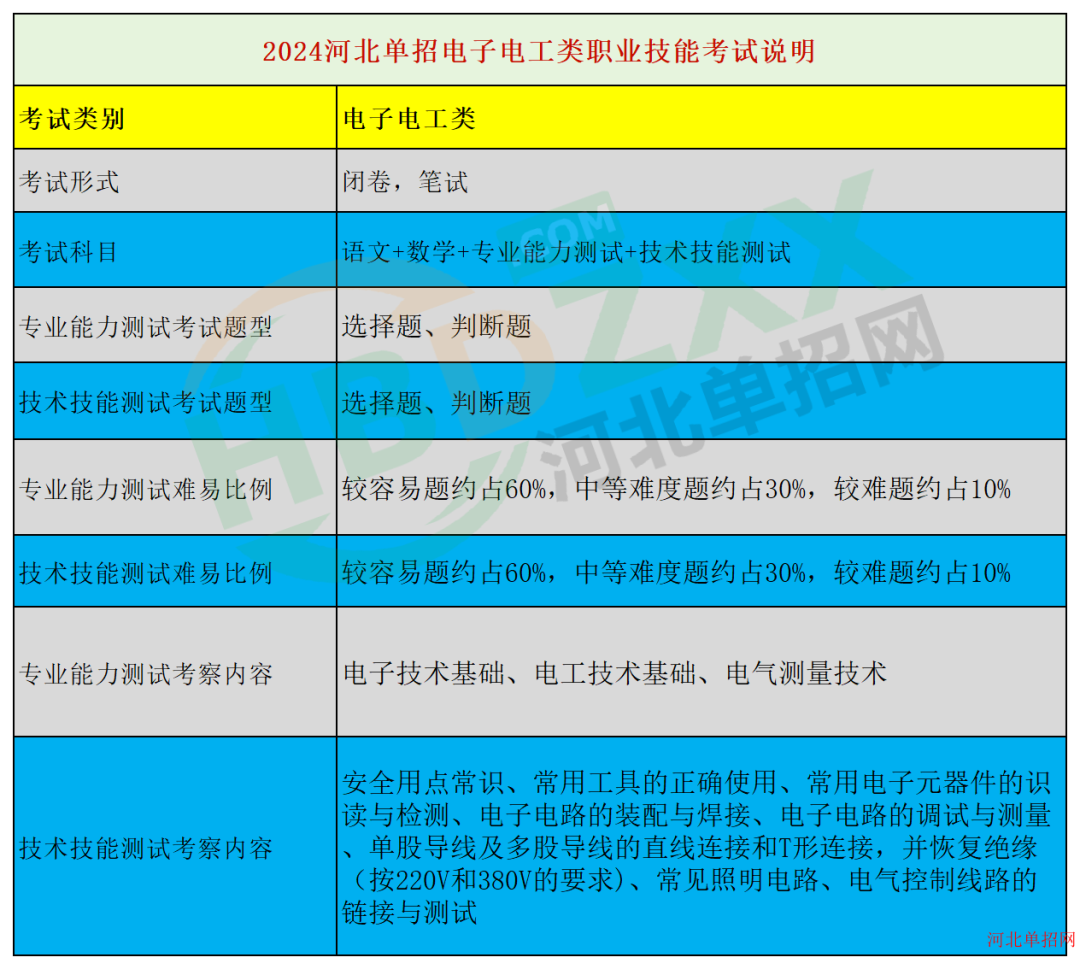 电子电工类:2024年河北省高职单招面向中职生电子电工类专业能力测试考试说明、2024年河北省高职单招面向中职生电子电工类技术技能测试考试说明