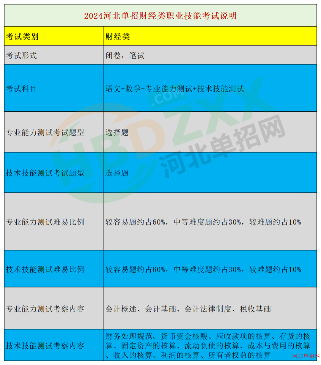 财经类:2024年河北省高职单招中职生财经类专业能力测试考试说明、2024年河北省高职单招中职生财经类技术技能测试考试说明