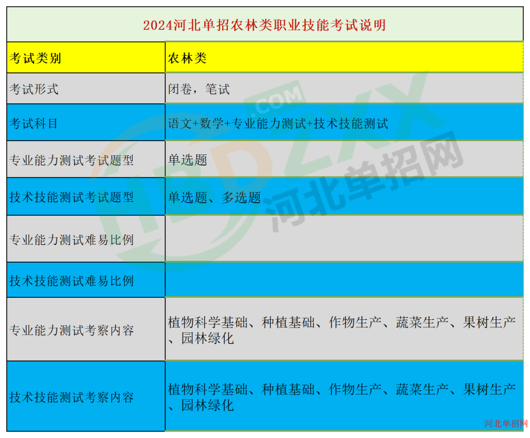 农林类:2024年河北省普通高职单招考试面向中职生的农林类 专业能力测试考试说明、2024年河北省普通高职单招考试面向中职生的农林类技术技能测试考试说明