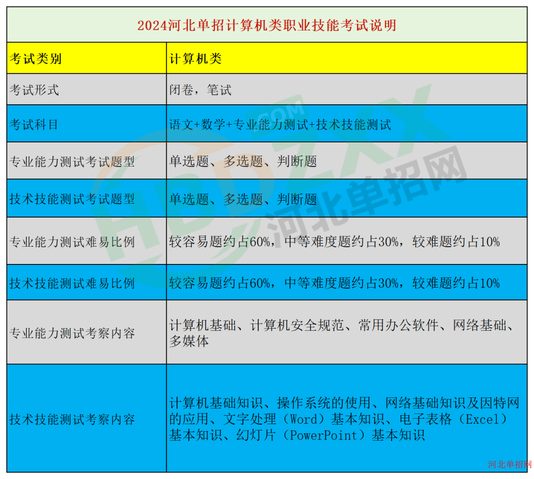 计算机类:2024年河北省高职单招面向中职生计算机类专业能力测试考试说明、2024年河北省高职单招面向中职生计算机类技术技能测试考试说明
