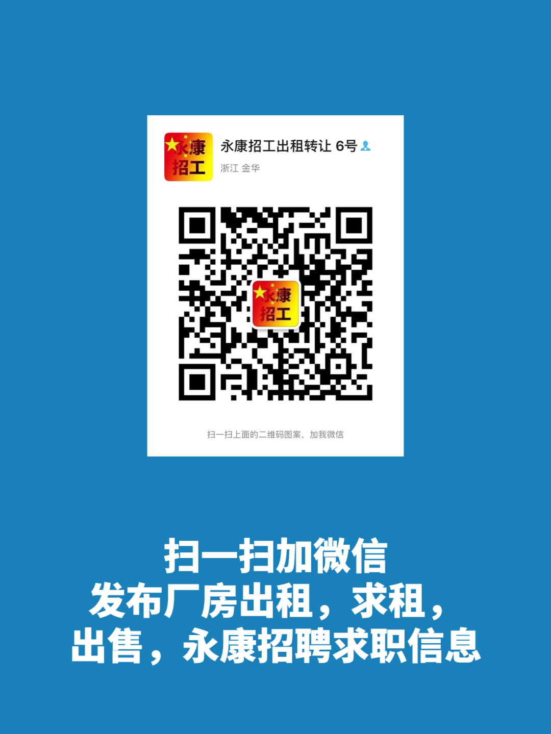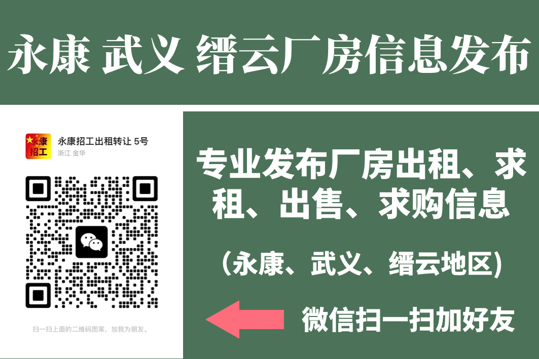 永康,武义,缙云等厂房信息发布平台在微信上专业发布厂房出租、出售信息,是永武缙地区专业的厂房信息发布平台。找厂房,发布厂房信息请扫描下面图片上的二维码添加微信:1183709970