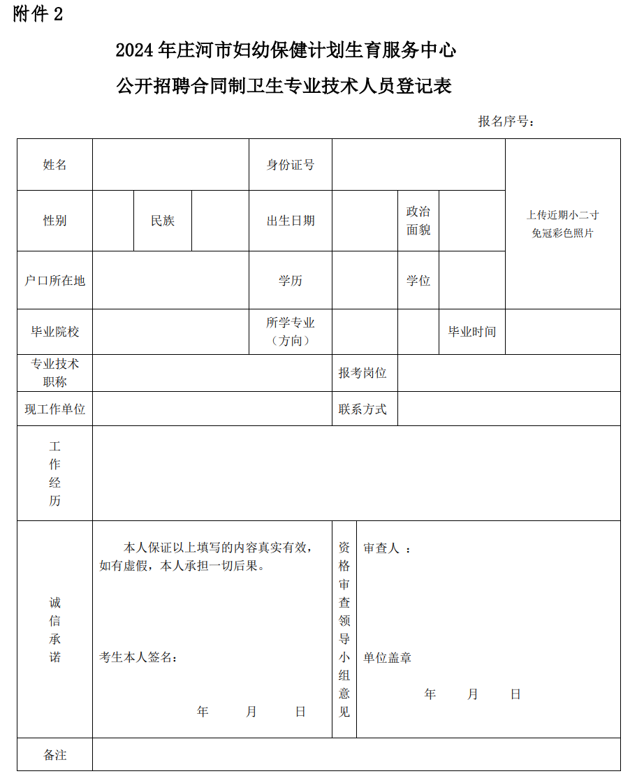 ① 2024年庄河市妇幼保健计划生育服务中心报名登记表(见附件2);