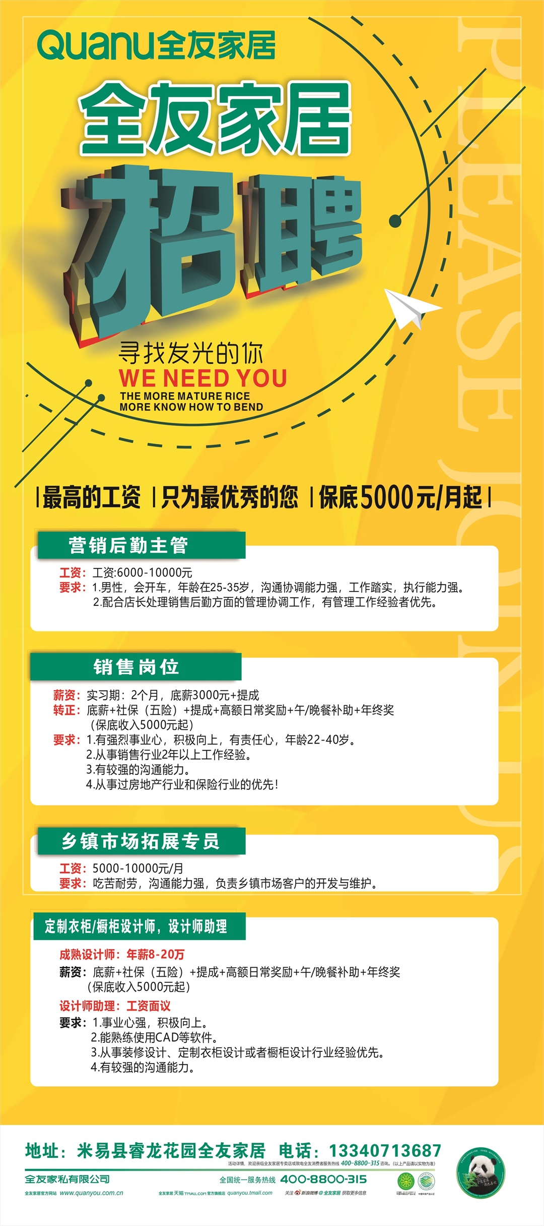 要求:1、熟手优先.2、能吃苦耐劳3、年龄25-50岁4.开朗外向,擅长推销物品。