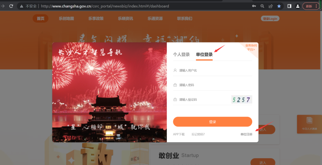 点击“单位登录”,输入正确的用户名/密码/验证码进行登录