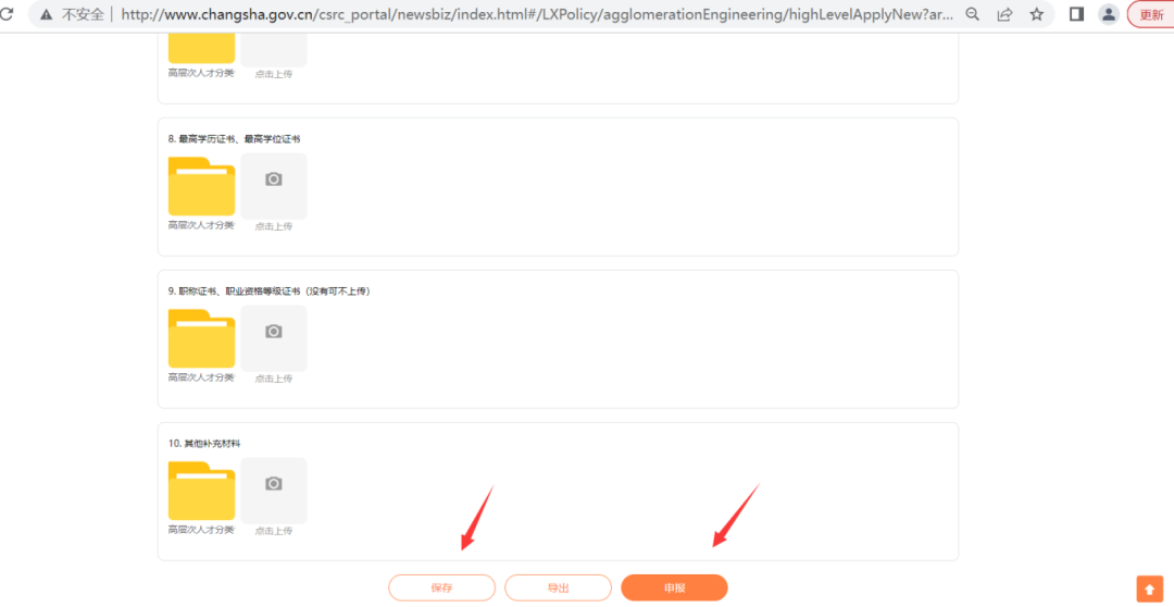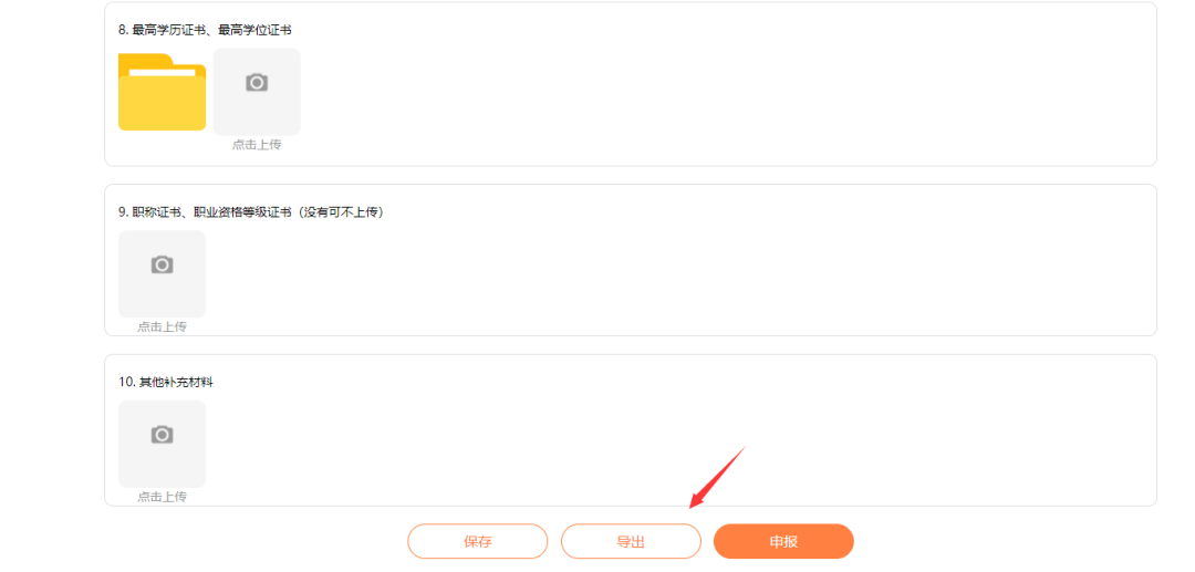 4)点击“在线申报”按钮进行业务申报,按照页面内指引填写信息,填写后点击“保存”按钮保存信息;部分业务保存后有“导出”按钮,可点击导出业务申报表,签字盖章后扫描上传至业务附件处: