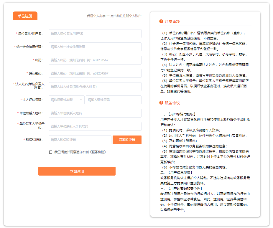 如果是新用户,点击“单位注册”填写注册信息,根据页面项提示进行操作。
