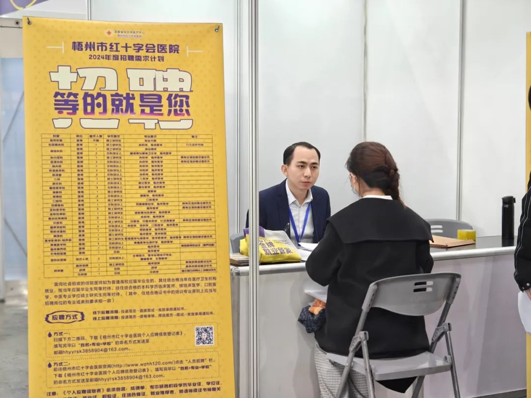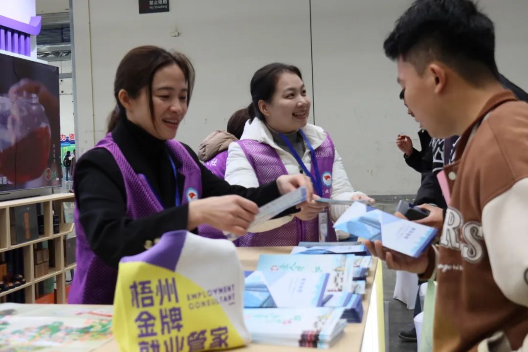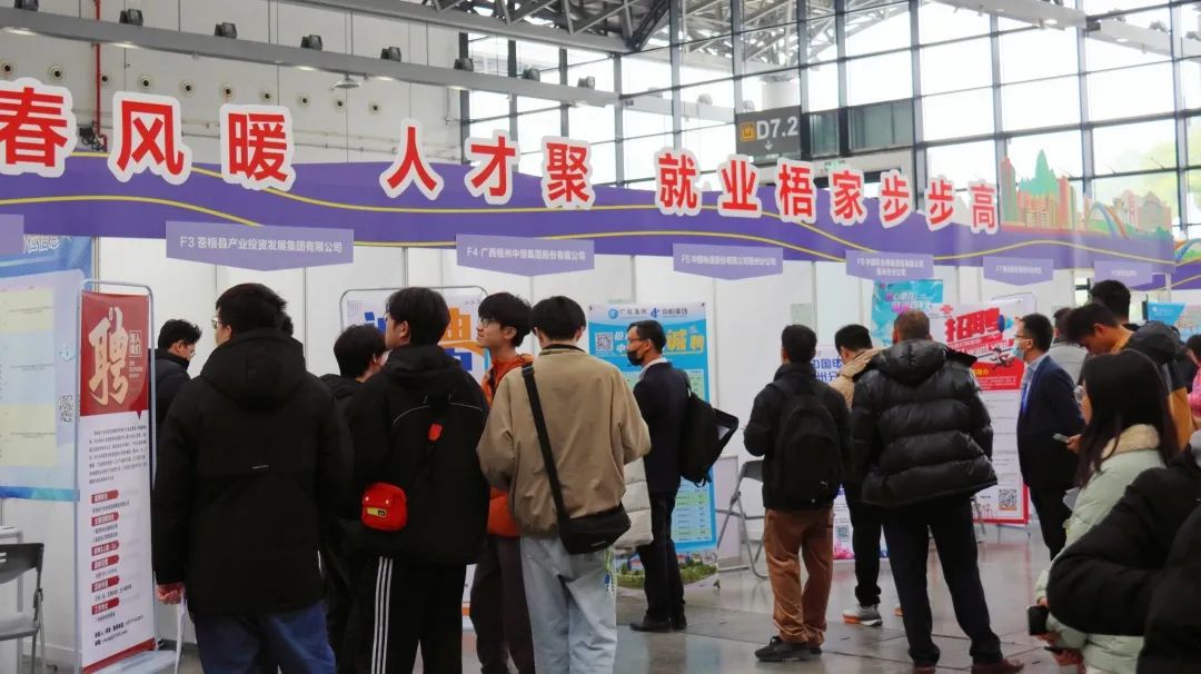 春风暖,人才聚。继举办了2024年“春风行动”系列活动后,为及时满足梧州市重点产业对人才的迫切需求,进一步促进高校毕业生留梧就业创业,3月2日,梧州市人力资源和社会保障局组团带领35家重点企事业单位赴全区人才交流大会招才引智。梧州招聘专区活动现场人流如织、供需两旺,近1500个招聘岗位吸引了近5千余人进场求职,收取有效简历千余份。