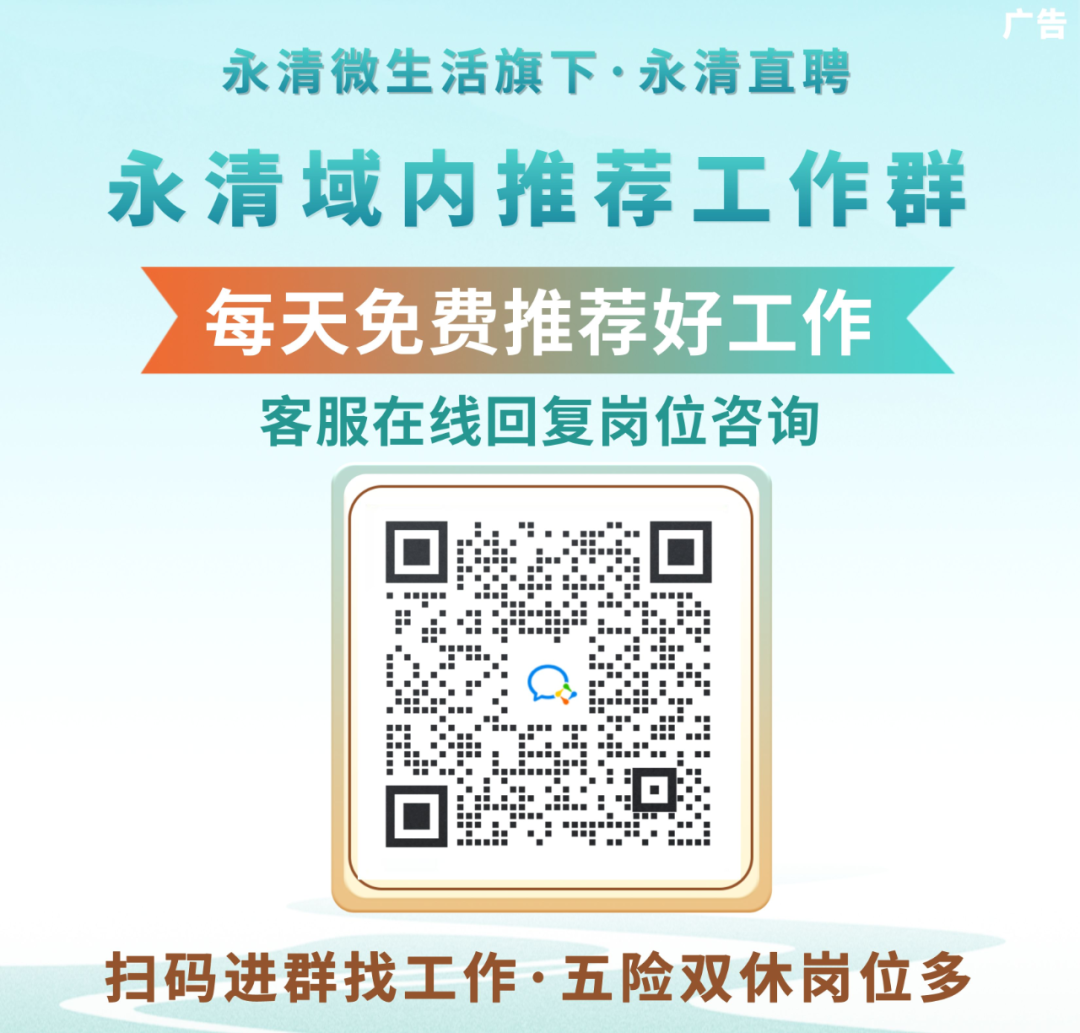 置顶【招聘】 招聘职位: 1、配送业务 工作要求:男,年龄20岁-40岁持有C1驾驶证,能熟练驾驶4.2米厢货,从事过快消品行业优先,综合工资6000元/月-10000元/月 2、餐饮业务 3、出纳 工作要求:性别不限,有一定财务工作经验,工资4000元+/月 4、文员 工作要求:能熟练使用办公软件,工资3500元+/月 工作时间:早上8:00-下午18:00 福利待遇:每月公休2天,上社保,班车接送等 联系电话:孙总15803268885,史总17332602662 【注:商业/平台勿扰】(3.3) 置顶【房屋出租】 星辰新天地小区门口三层门面房一间,房屋面积187平米,该房环境良好,用途广泛,此区域客流量非常大 联系电话:13785666266 【注:商业/平台勿扰】(3.3) 置顶【永清快递分拣中心】 招聘岗位: 1,韩村快递分拣中心分拣员 联系电话: 13011480036 2,燕阳城驿站客服 联系电话13393062999 3,快件分拣员 联系电话15631674567 4,派件员 联系电话18031607565 5,取货司机(c本) 联系电话17832760777 应聘岗位请打对应的联系电话 【注:商业/平台勿扰】(3.1) 置顶【优品服饰】 招聘岗位: 1,时装样衣师傅 2,时装裁剪师傅 3,时装生产精英组长 4,时装熟练副工小烫 5,上中序车工 6,下序车工 7,一线时装检验 8,时装手针 9,一线时装大烫 工作时间早8晚10、月休2天和两个晚班,工资发放准时。 厂址:河北永清服装工业区兴宏辉院内3楼优品服饰 联系电话:17733607733 联系微信:13311229160 【注:商业/平台勿扰】(2.28) 置顶【永盛酒楼】 招聘岗位: 1,店长 2,精品家常菜厨师 3,服务员 工资加绩效奖,包食宿,公休,工费旅游。 联系电话15097618889 【注:商业/平台勿扰】(2.28) 置顶【京师幼儿园招聘】 招聘岗位: 1,教师 2,保育员 3,招生顾问 任职要求: 1.专科以上学历,教育相关专业, 2.热爱学前教育事业,无犯罪、不良记录,身心健康,亲和力强,服务意识强. 3.薪资面议 4.工作地点:永清县会昌街245号(南关)京师幼儿园 联系电话:18830636998 【注:商业/平台勿扰】(2.28) 置顶【云裳小镇】 招聘岗位: 1,绿化工,工资待遇3500–4000元/月 2,市场管理员,工资待遇3500–4000元/月五险 3,民宿管理员,工资待遇3000-3500元/月 徐女士:16630652254 【注:商业/平台勿扰】(2.27) 置顶【服装仓库招工】 招聘岗位: 1,电商服装退货质检 2,发货-拣货-包装 具体要求: 1,年龄18-40岁,优先录用熟悉仓储业务 2,综合月工资4000-6000(熟悉仓储业务能力较强者,工资面议) 3,工作时间早9点-晚6点 地址:廊坊市永清县榕华路4号电商物流园 李先生:17710309307微信同号 【注:商业/平台勿扰】(2.26) 置顶【招聘缝纫工】 招聘岗位:熟练缝纫工 简单易学,常年不换活,四小附近 薪资待遇:计件工资,3000-6000元/月,中午管饭 联系电话:15532648706 【注:商业/平台勿扰】(2.25) 置顶【永新龙粮油招聘】 招聘岗位: 1、C1司机,5500—6500元/月 2、送货工2名,5000元-6000元/月 3、业务员1名 薪资待遇:保底4000➕提成 联系电话:13832648318沈经理 【注:商业/平台勿扰】(2.24) 置顶【绿化公司招聘】 招聘岗位: 1、绿化工人10名 招聘要求:40-65岁,男文不限 2、司机及开40马力拖拉机 招聘要求:40一65岁 薪资待遇:面议 联系电话:19931679288 【注:商业/平台勿扰】(2.24) 置顶【招聘保姆】 招保姆干净利索,经验丰富,五十岁以下。(可住可不住,永清城区可不住。) 具体详细电话:15931631746 地址:永清县韩村镇 【注:商业/平台勿扰】(2.24) 置顶【熊喵来了火锅店】 招聘岗位: 1、实习店长,5500-6500 2、前厅经理,4500-5500 3、后厨经理,5500-6500 4、前厅,3800-4200 5、后厨,3800-4200 6、传菜,3800-4200 7、洗碗工,3800-4200 底薪+全勒+奖金,带薪培训 全勤奖、推荐奖、包食宿、工龄工资、公费培训、生日福利 联系人:17533606979 / 15530656778(张经理) 地址:永清县新明珠购物广场5楼 【注:商业/平台勿扰】(2.23) 置顶【整体转让】 中艾堂古法艾灸永清旗舰店 一楼二楼一共240平 地址:河北省廊坊市永清县第二小学附近(开元路中段) 联系电话:15133923753 【注:商业/平台勿扰】(2.23) 置顶【档口转让】 黄金档口转让 精装修 接手即可盈利 机会难得 地址:永清县鑫海鞋城一楼 联系电话:18931706999 【永清直聘2.23】 置顶【招聘信息】 招聘岗位: 1、花艺师 2、花艺师助理 工作要求:小仙女优先,擅长沟通。熟悉网络营销运营,工作积极主动,具有良好的沟通表达能力。 薪资待遇:面议,底薪+提成 联系电话:19933452807 【商业/平台勿扰】(2.23) 置顶【小鲍核雕】 招聘岗位:主播20名 主要快手、抖音直播 岗位要求:24-38岁,女,有无直播经验均可,口齿伶俐,活泼,思维敏捷,不需要露脸 工作时间:6到8小时。外地人优先 工资待遇:无经验带薪培训,第一个月保底3000第二个月保底5000,手把手教学2月以后工资5000到20000,有1到2年经验的主播工资面谈 工作地点:永清县城,短期勿扰 电话:13323065947 /15128449344 【商业/平台勿扰】(2.22) 置顶【制衣厂】 招聘岗位: 1、缝纫工20名 2、付工2 名 3、锁眼订扣 2名 薪资待遇:3000-6000元/月(保底➕计件),中午管饭 工作时间:早8点-晚6:30 工作时间自由 适合陪读 带娃的宝妈(外放小件可带回家做) 联系电话: 13331130906 工作地址:县城英图学校附近 【商业/平台勿扰】(2.22) 置顶【招聘信息】 招聘岗位: 1、缝纫活 杂椅子套工人 学活期间九个小时130元 2、长期临时工 岗位要求:手头麻利的,车接送或者找一个会开车司机拉人干活200元,去胜芳 地址:永清县后奕 联系电话:13831648970 【永清直聘2.22】 置顶【房屋出租】 永清开发区大良村出租独
