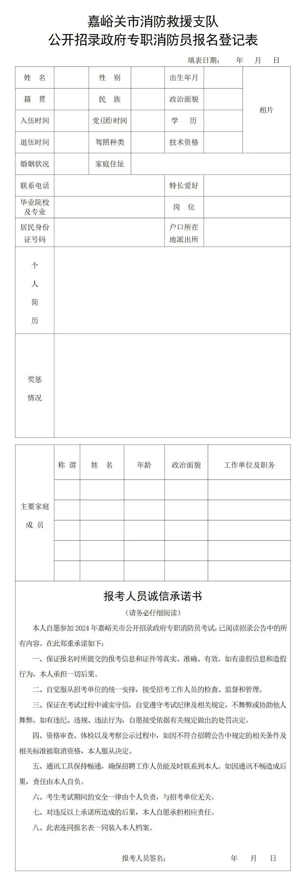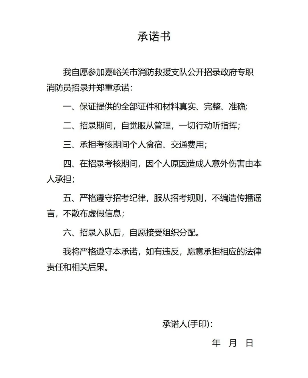 嘉峪关市消防救援支队政府专职消防员招聘对象承诺书