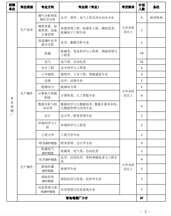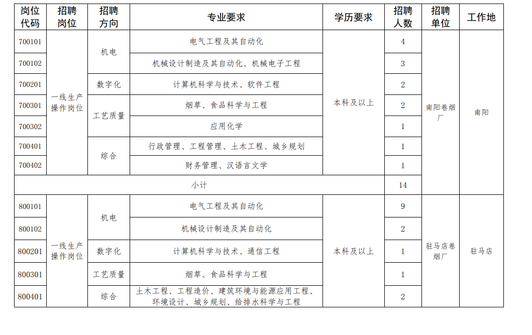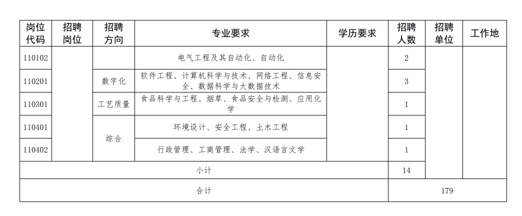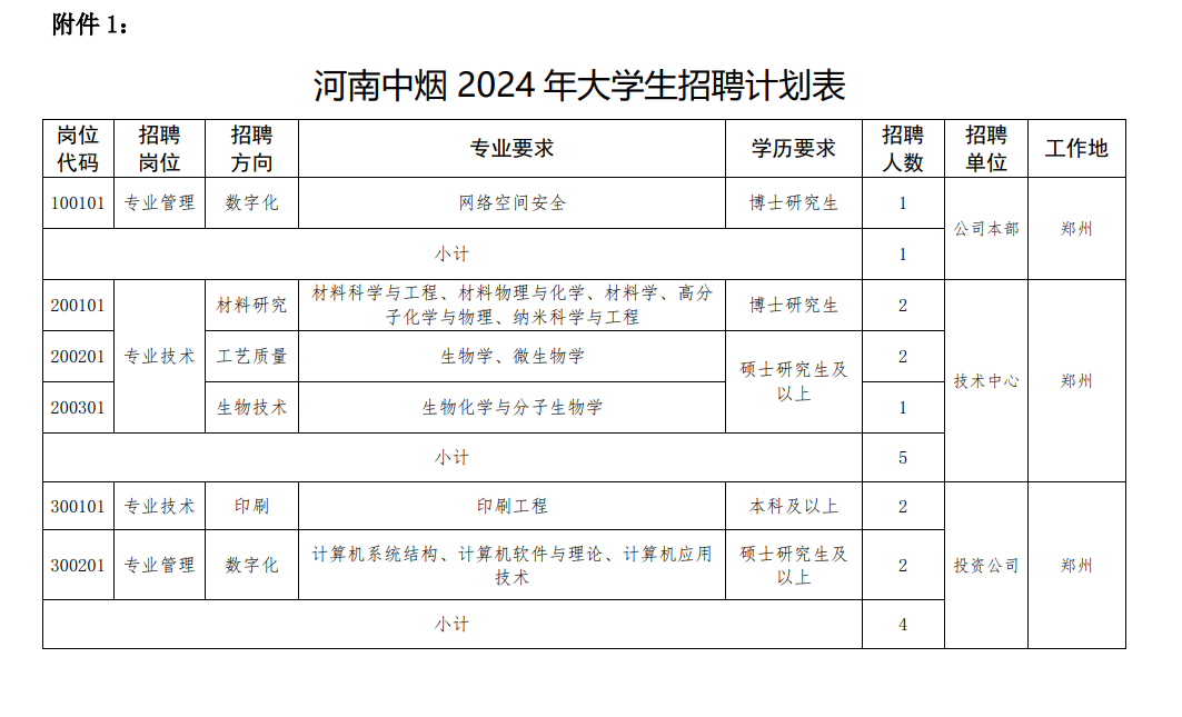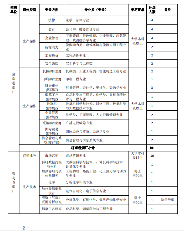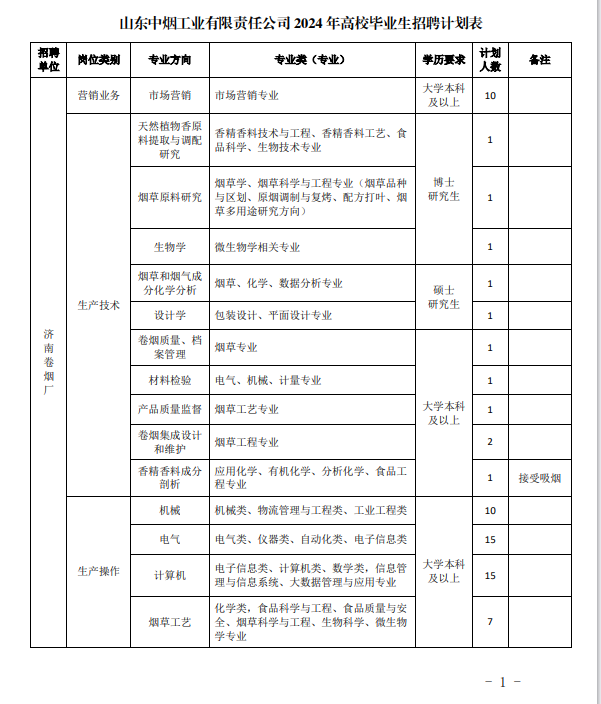 具体详见《山东中烟工业有限责任公司2024年高校毕业生招聘计划表》(附件)。