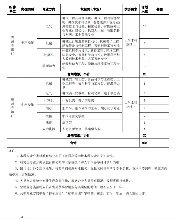 每名应聘者限报考一个岗位,其中专业方向中有“将军集团”“颐中集团”字样的,在烟厂实习一年后,调入集团工作。应聘者应按要求在相应时间内填写报名信息,所填内容及提交的申请材料应当真实、准确、完整,不符合报考资格条件的请勿报名。