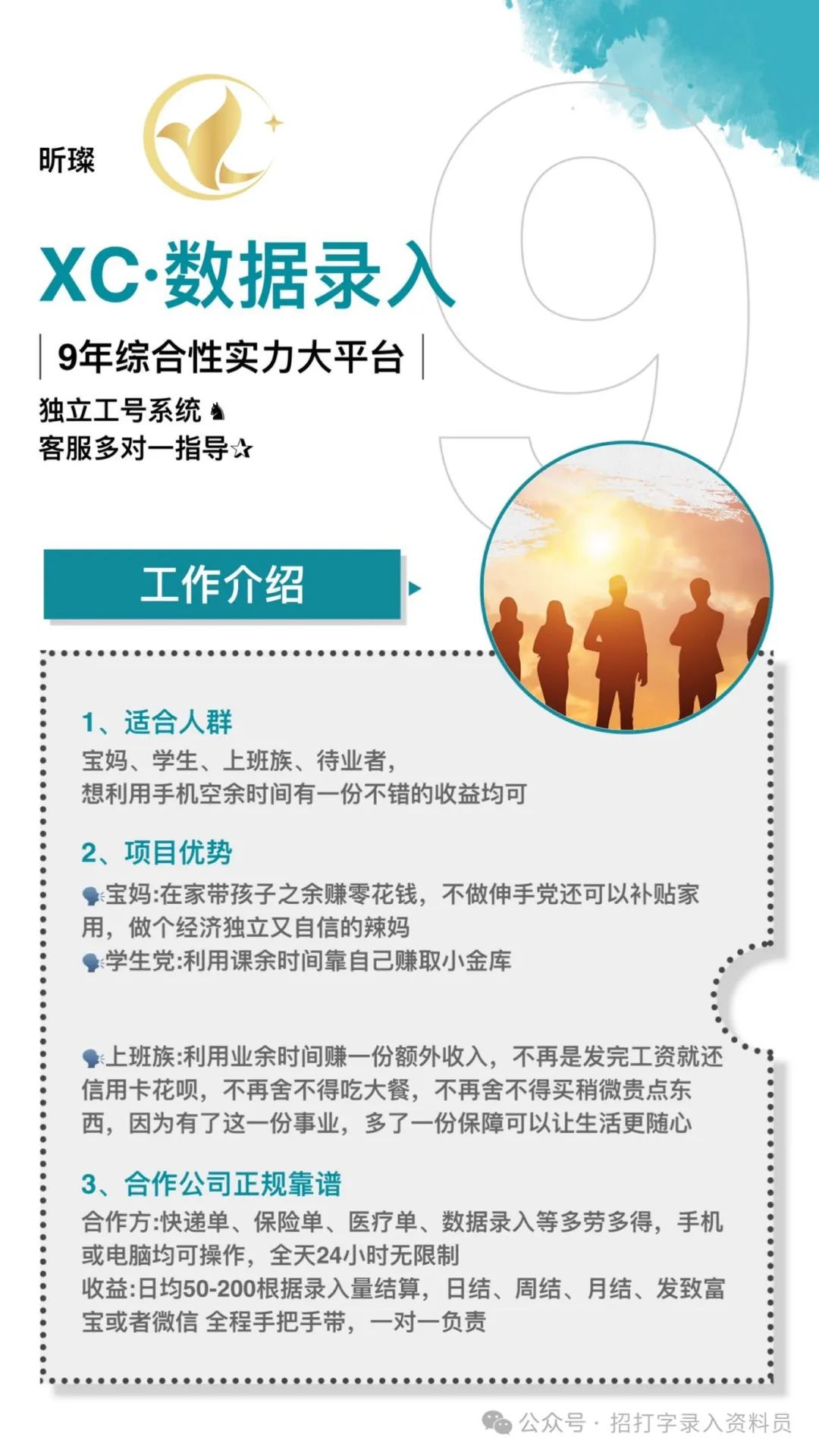 一份可在家里的工作,一份不用忍受与孩子离别的工作,一份只要会用手机和电脑即可操作的工作,您还等什么?!了解又不花💰 !手机电脑均可操作,主要负责快递单、医疗单、保险单等的录入工作,宝妈、学生、上班族、待业者都可以做。蒹职一天20到100+元,全职底薪2500-5000元,时间地点不限,没有任务要求,随时开始随时结束,24小时有任务,多劳多得。