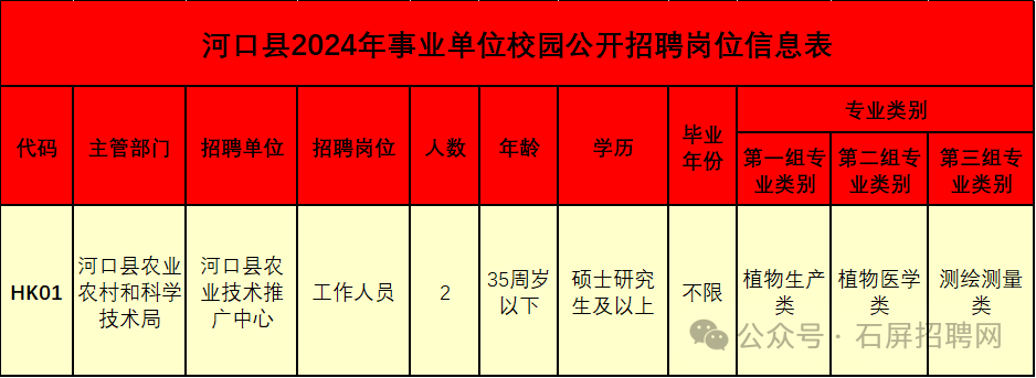 招聘岗位由招聘单位编报,招聘专业、学历等与岗位资格条件相关的问题,由招聘单位和主管部门负责解释。详见《河口县2024年事业单位校园公开招聘岗位信息表》(附件1)。