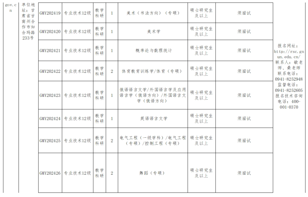 学校人事处电话:0941-8252948;17794408181(敏老师);18194167700(桑老师)