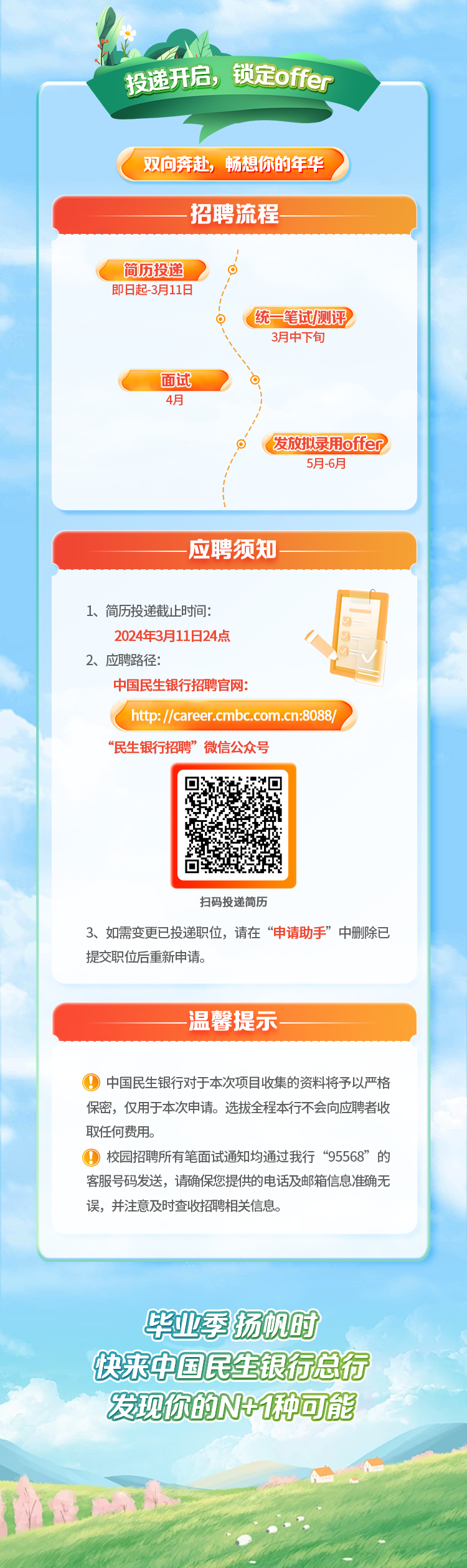 >招聘留学生丨中国民生银行总行2024届校园招聘!